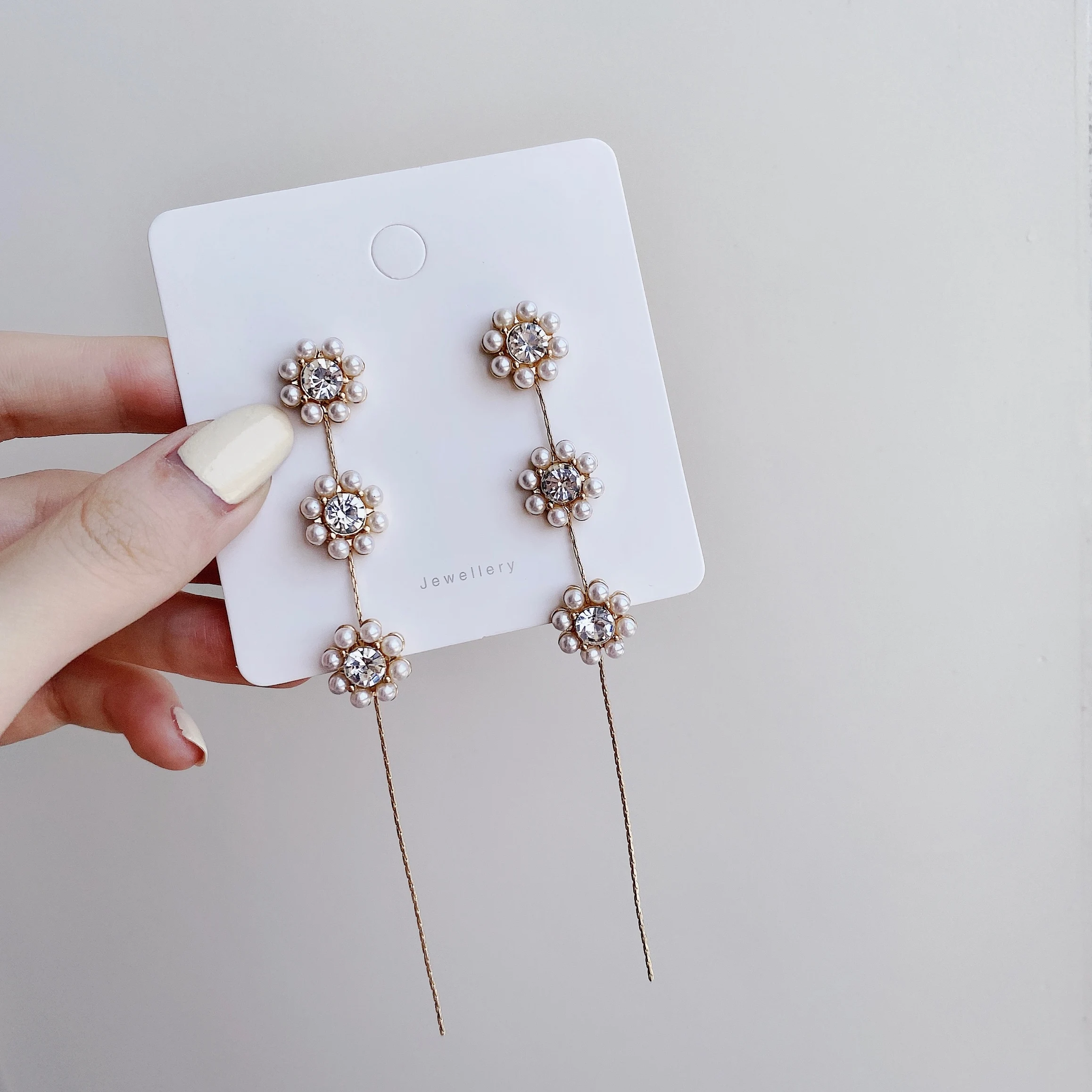 Серьги-клипсы с жемчугом, в Корейском стиле, Длинная кисточка из горного хрусталя