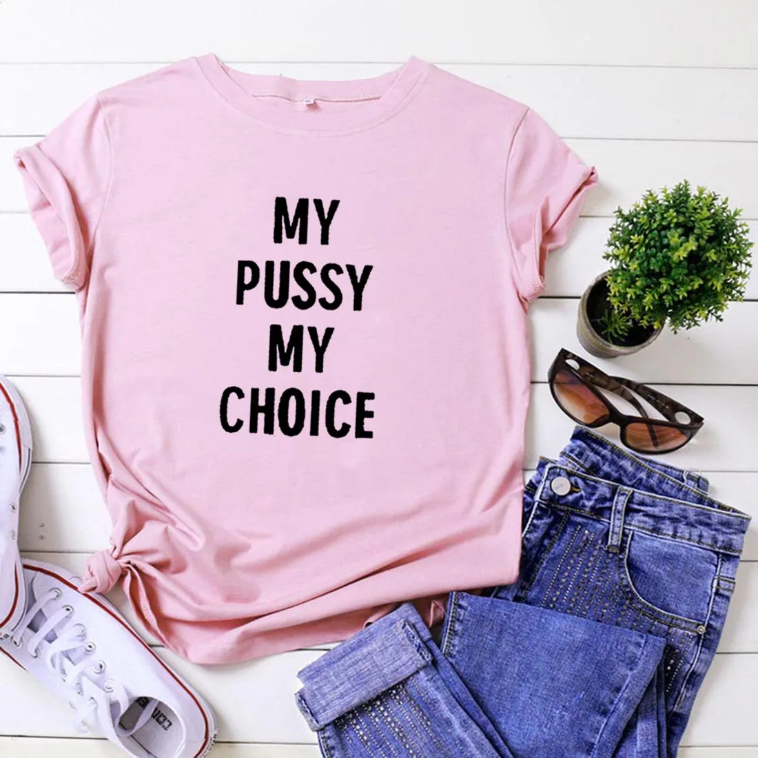 Женская хлопковая Футболка My Pussy My Choice, черная свободная футболка с коротким рукавом, женская футболка в стиле Харадзюку