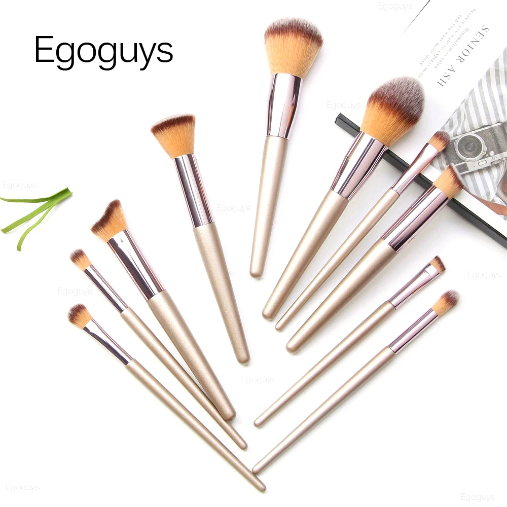 10PCS шампани цвета практические кисти макияж установить мягкие щет...