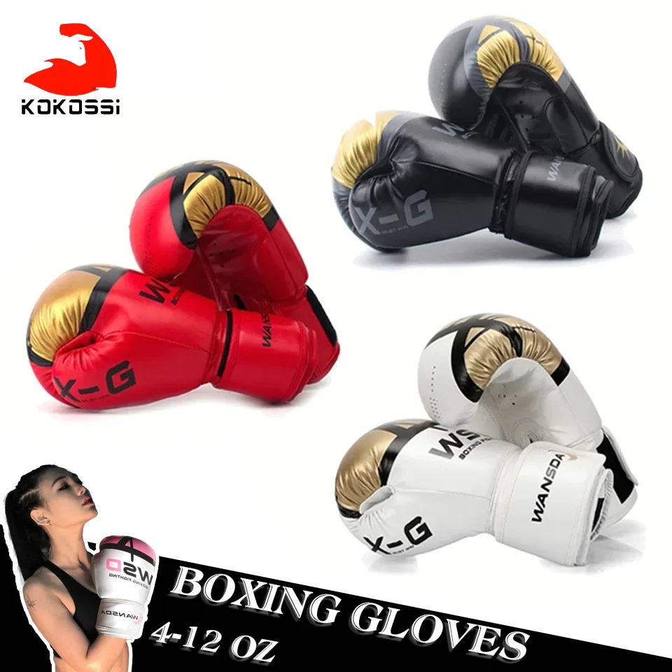 KoKossi удар Боксёрские перчатки для Для мужчин Для женщин Для мужчин искусственная Каратэ Муай Тай Guantes De Boxeo бой ММА Санда обучение взрослых детское оборудование Для мужчин t