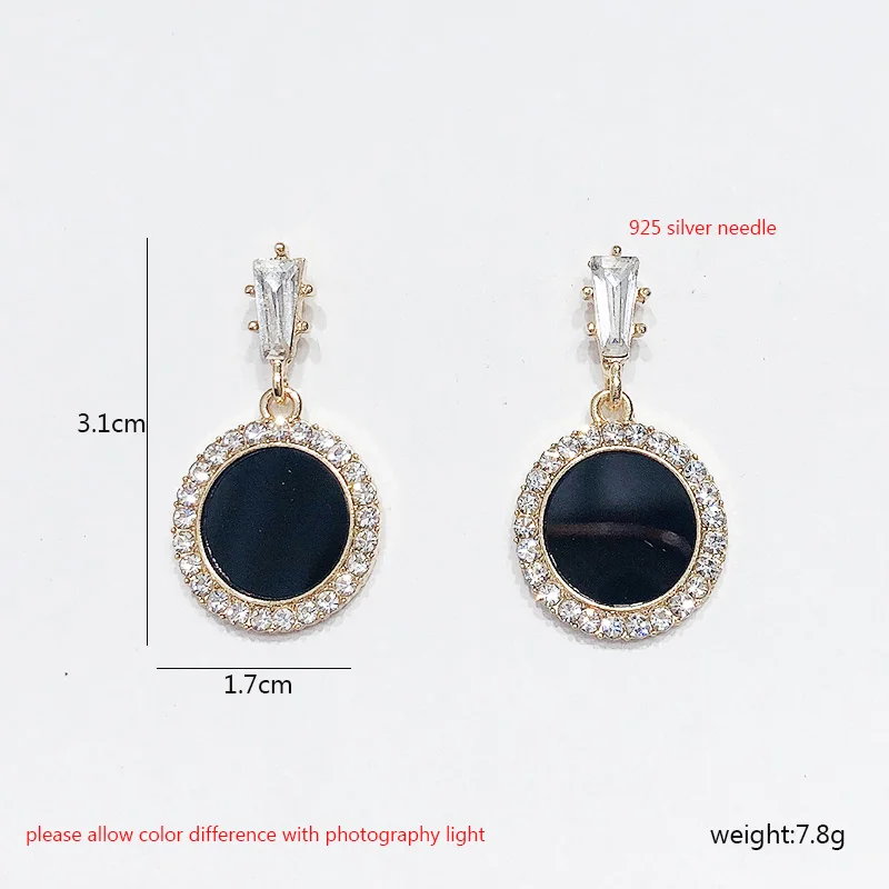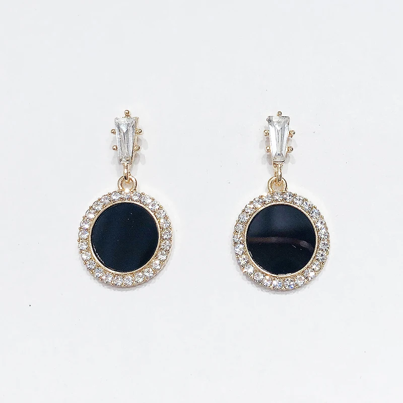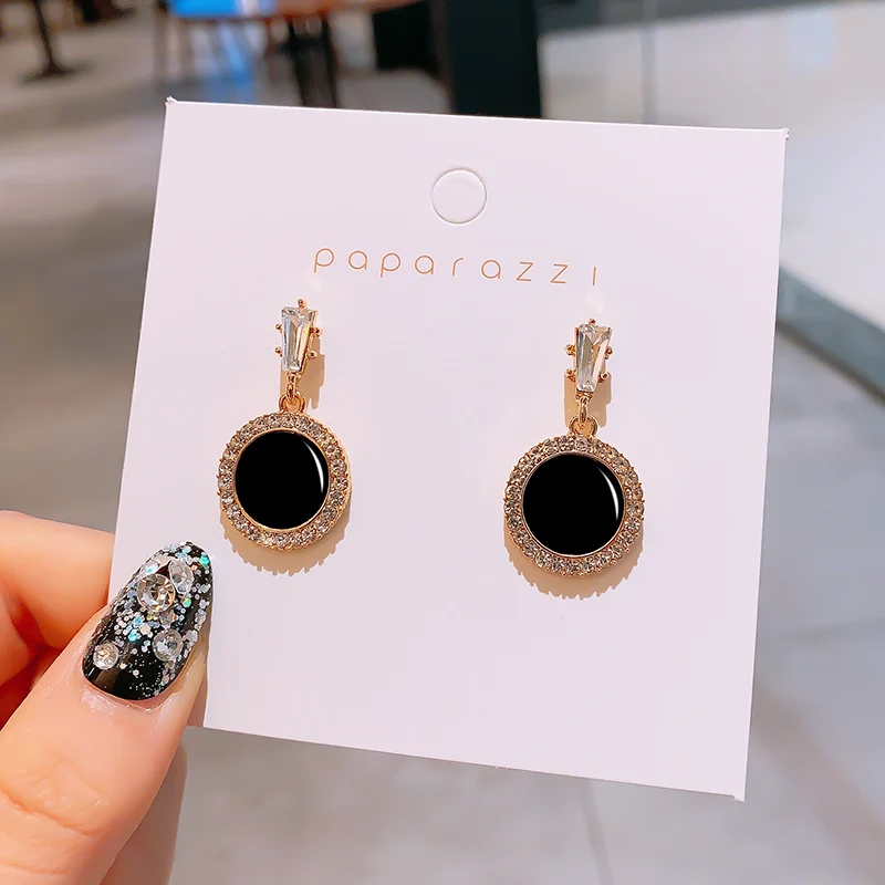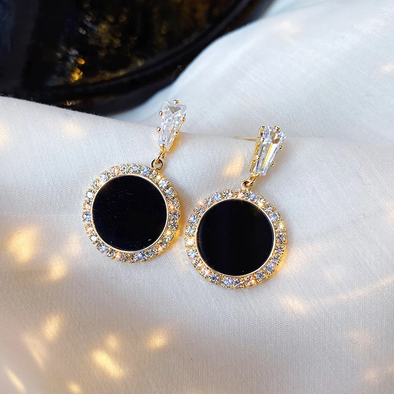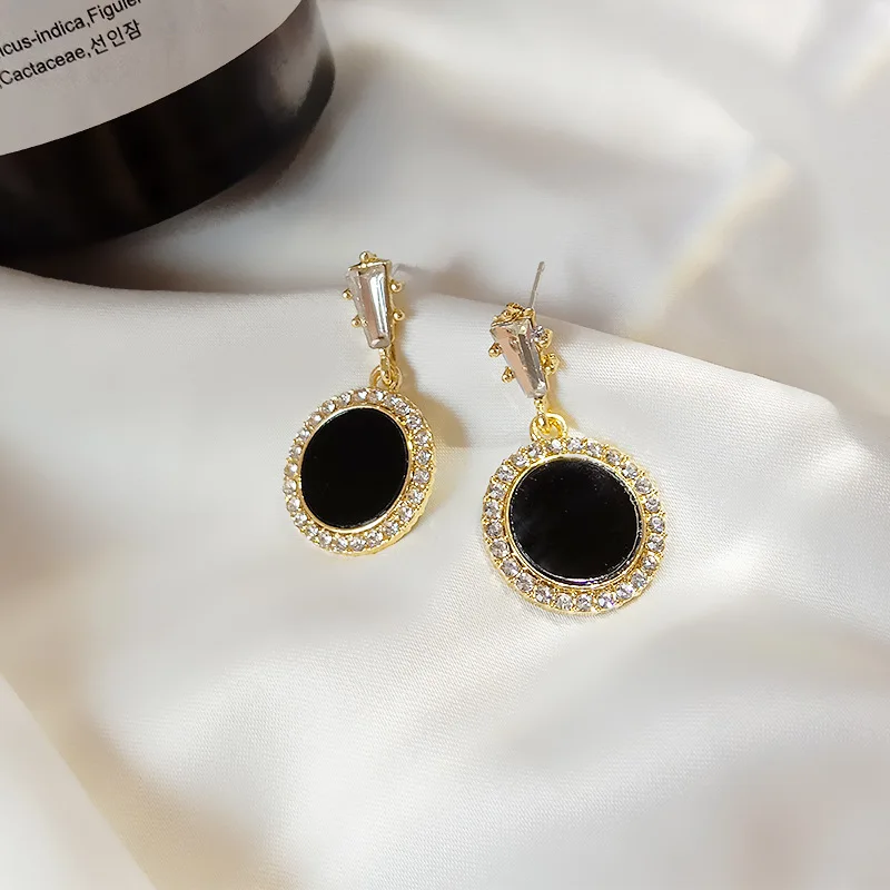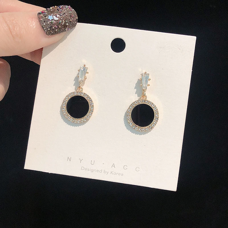 Круглые серьги Стразы 2021 новые черные модные корейские личные тем...