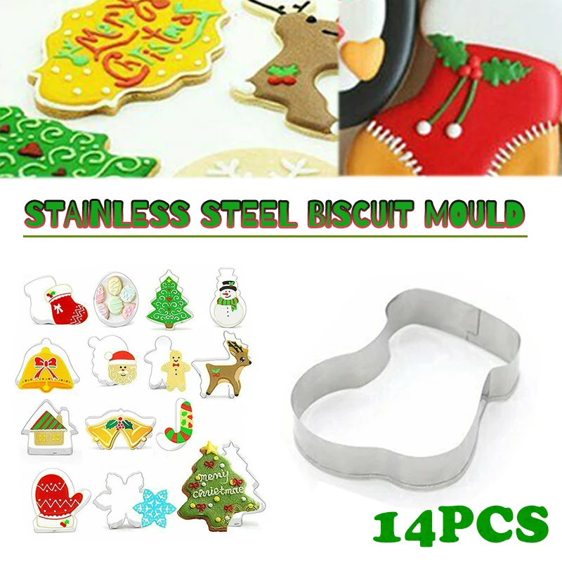 14 шт., нержавеющая сталь, рождественские резак, формы для печенья, торт, помадка, набор для выпечки, кухонная форма для торта, украшение печенья