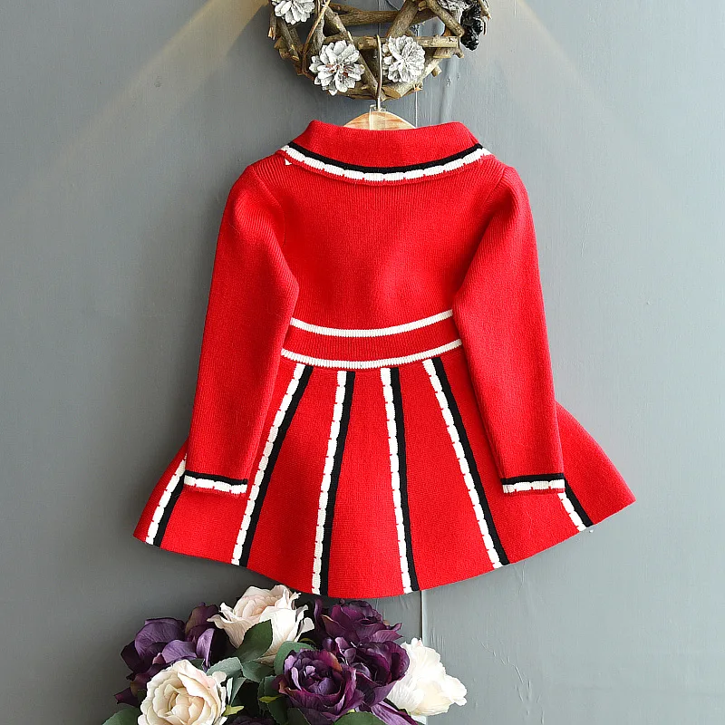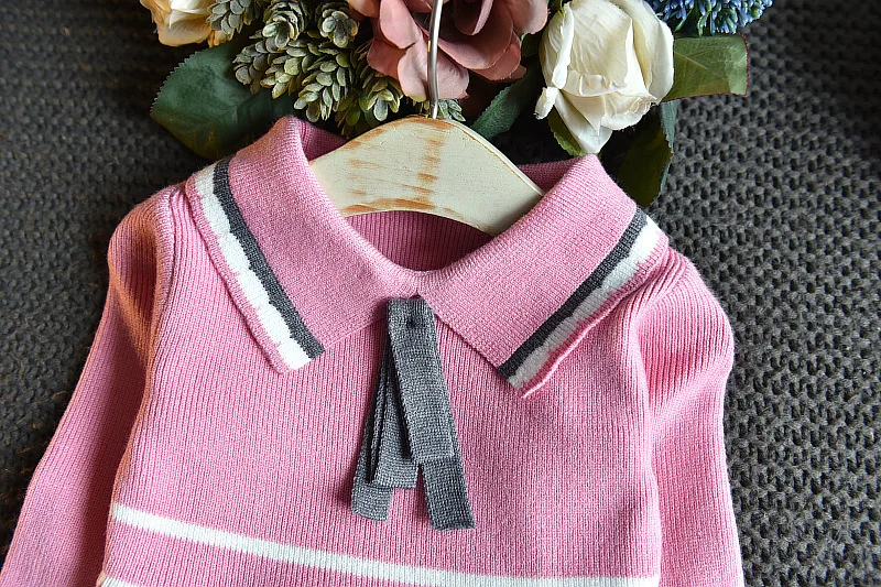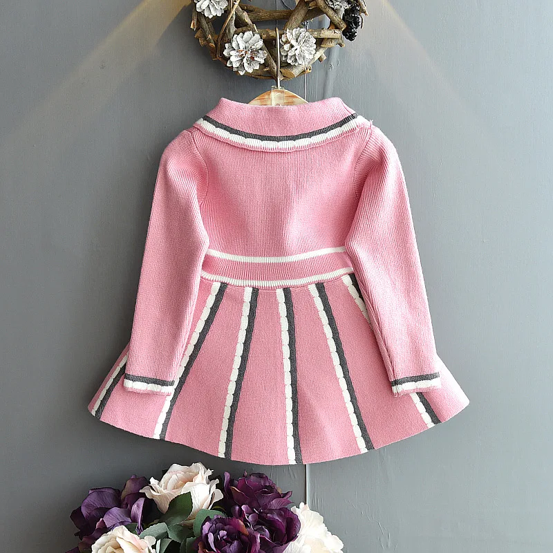 Осенне-зимняя одежда для маленьких девочек, платье-свитер в полоску, плиссированное платье в студенческом стиле, Детская осенняя одежда, платье принцессы для девочек