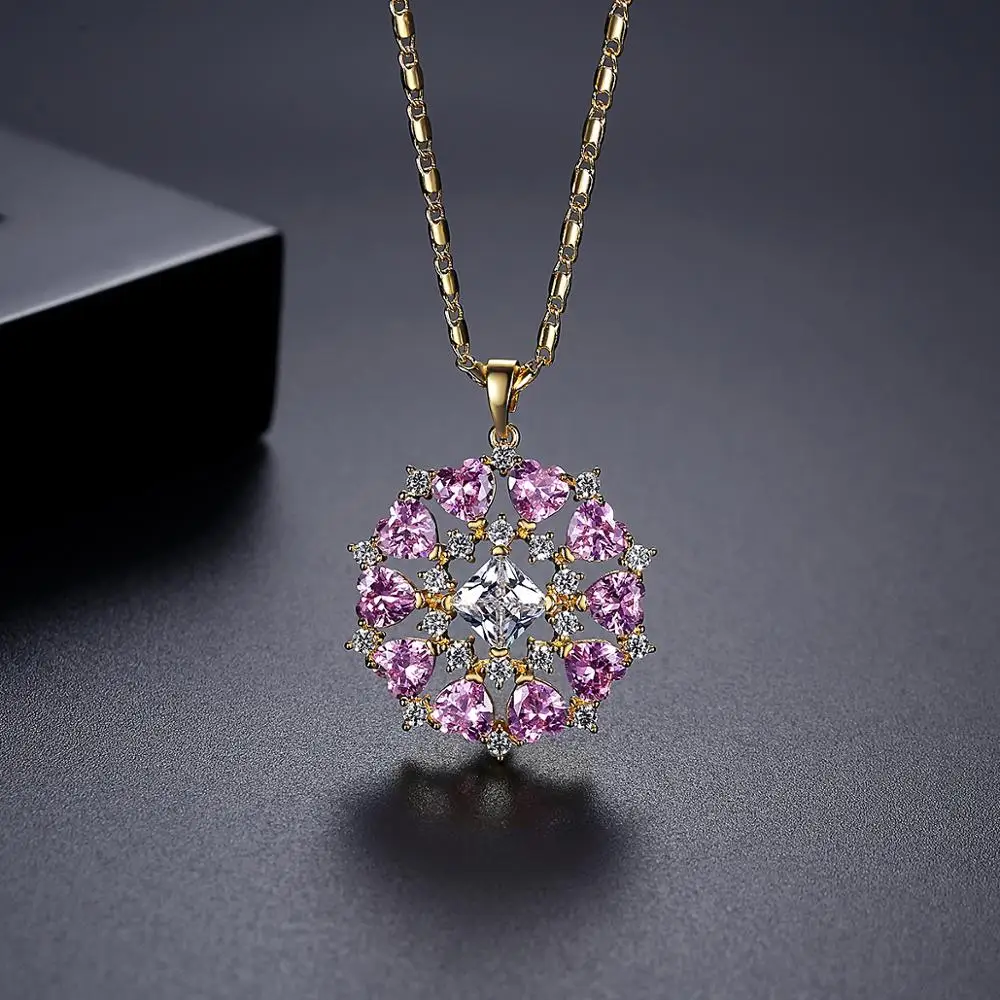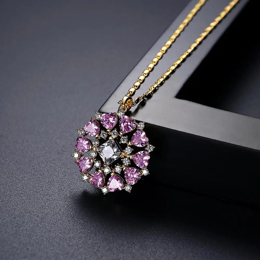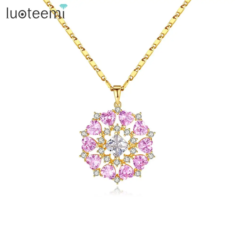 Ожерелье LUOTEEMI с подвеской в форме цветка для женщин, маленькое фиолетовое сердце, кристалл, кубический циркон, модное очаровательное ювелирное изделие, подарки для свиданий