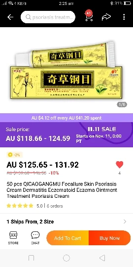 Дропшиппинг 50 шт. QICAOGANGMU Focallure крем от псориаза кожи дерм...