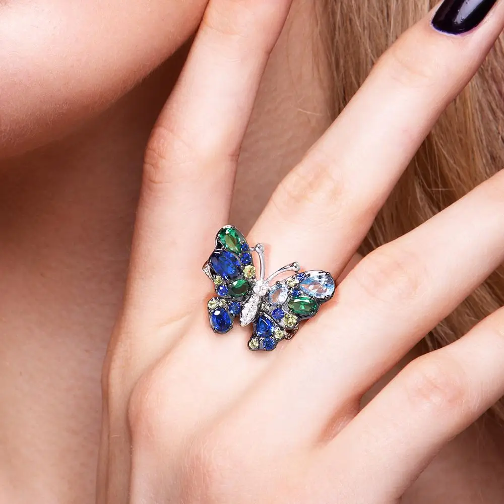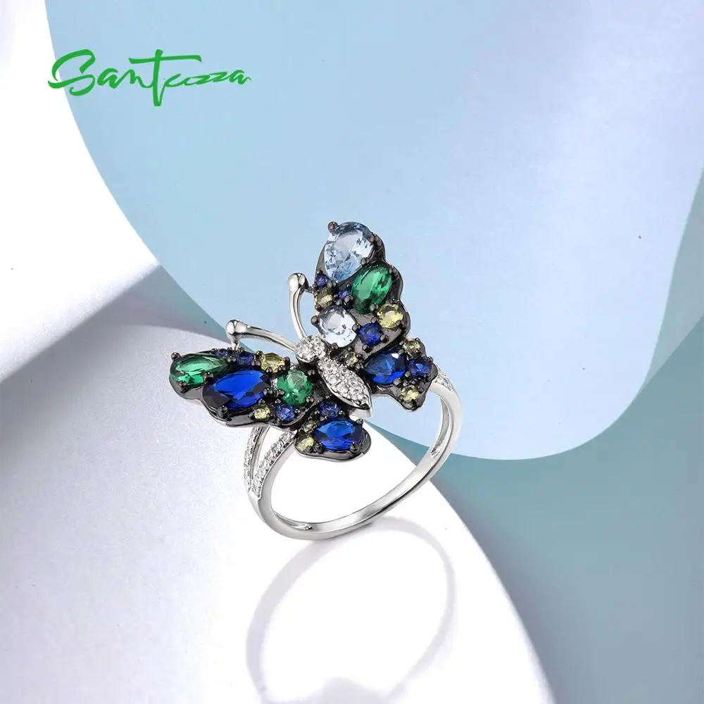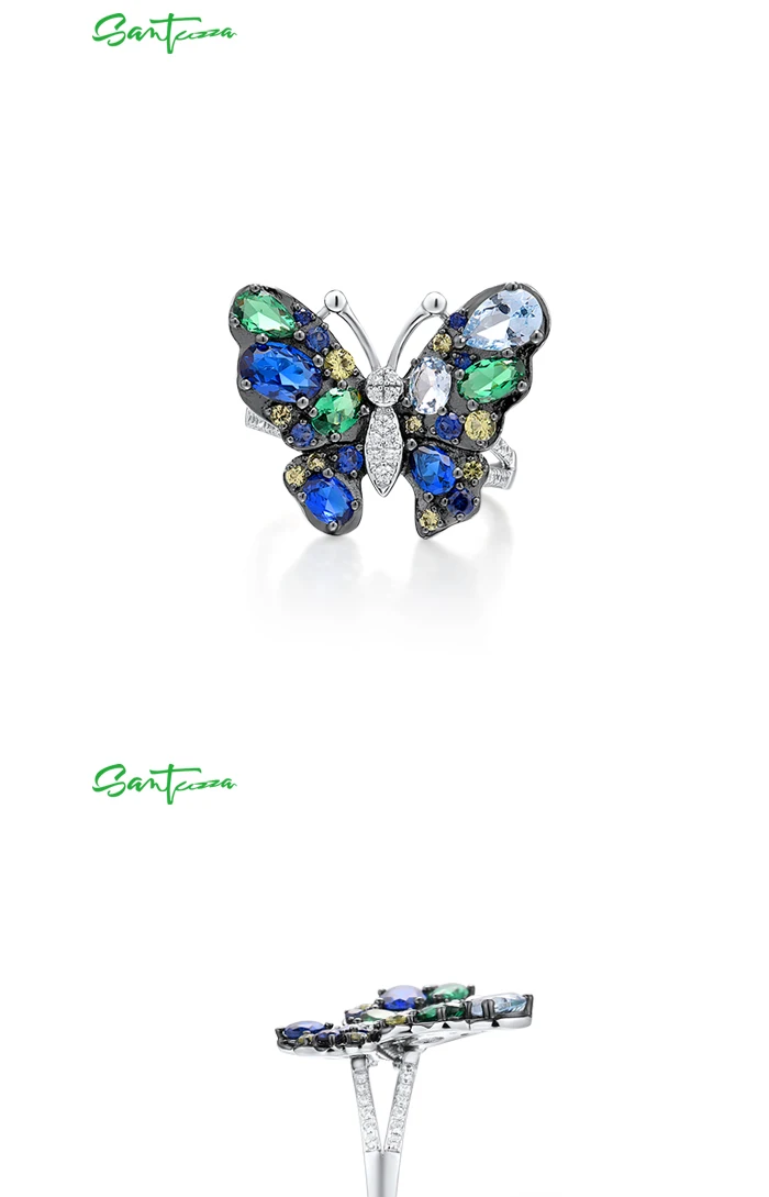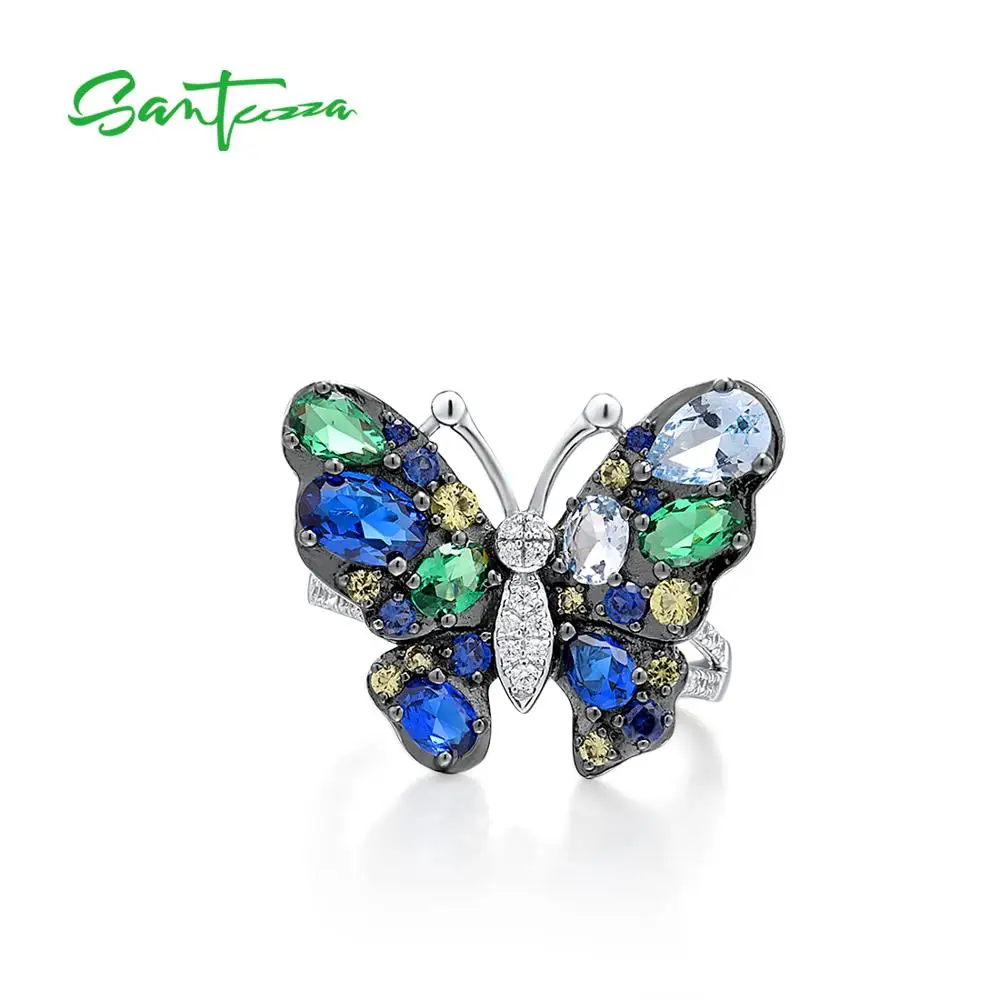 Женское серебряное кольцо SANTUZZA, из серебра 925 пробы с синей бабочкой и шпинелем