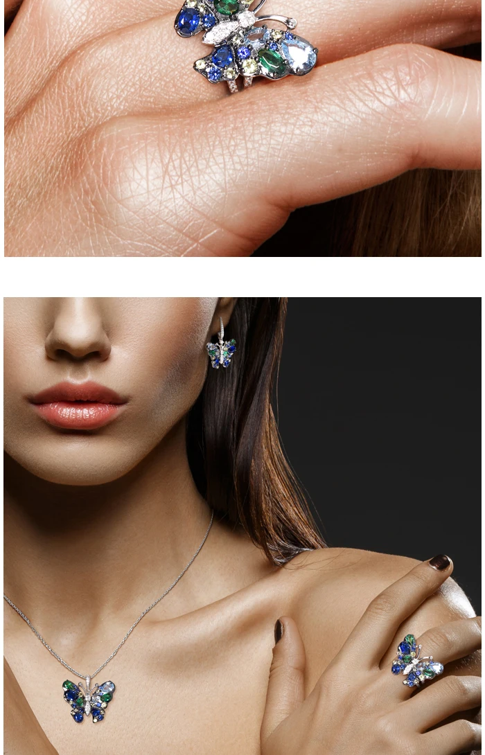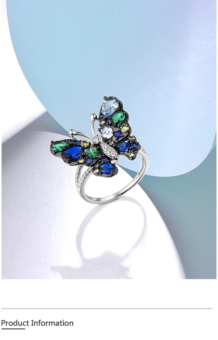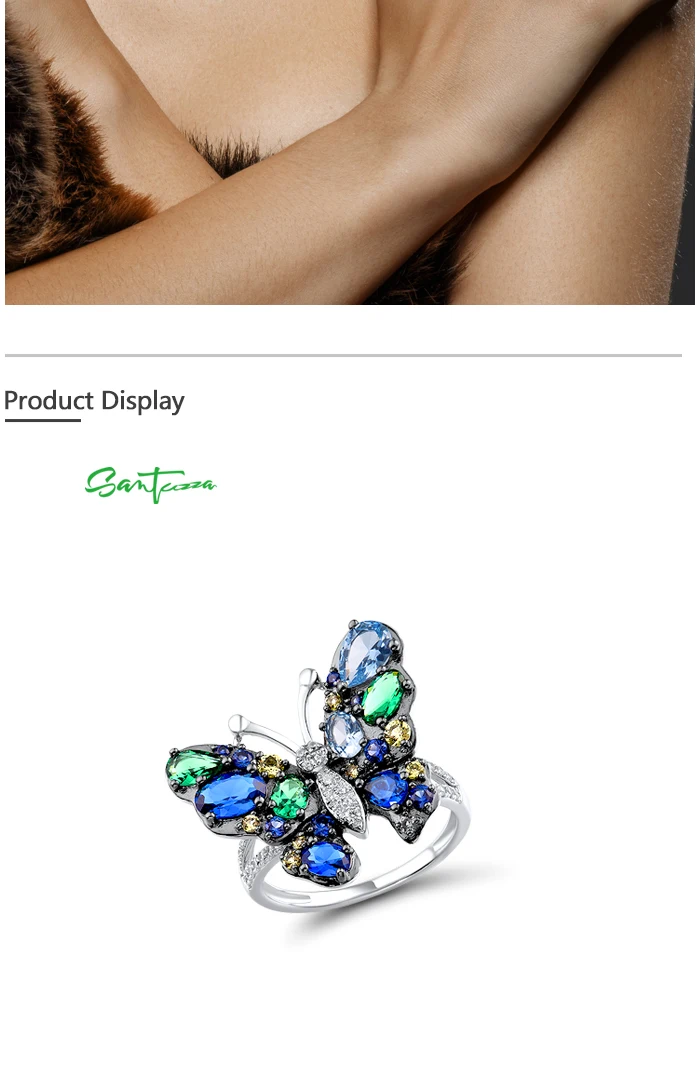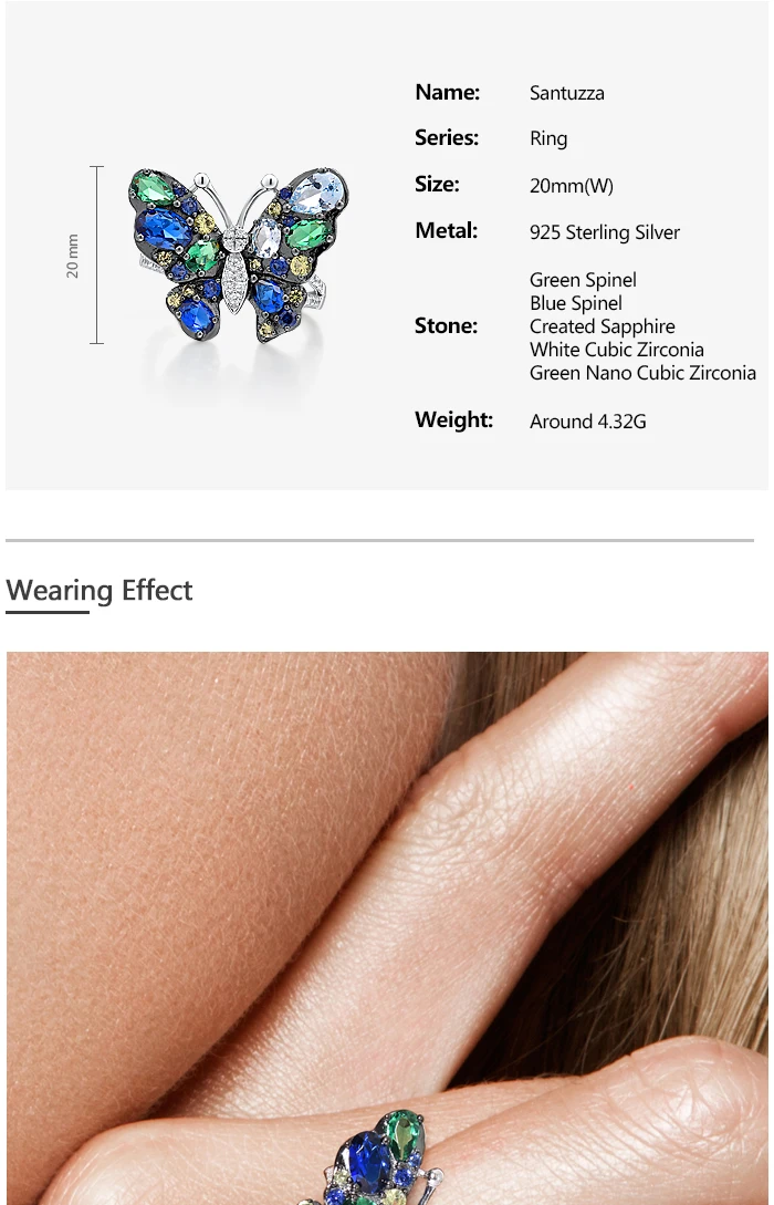 Женское серебряное кольцо SANTUZZA, из серебра 925 пробы с синей бабочкой и шпинелем
