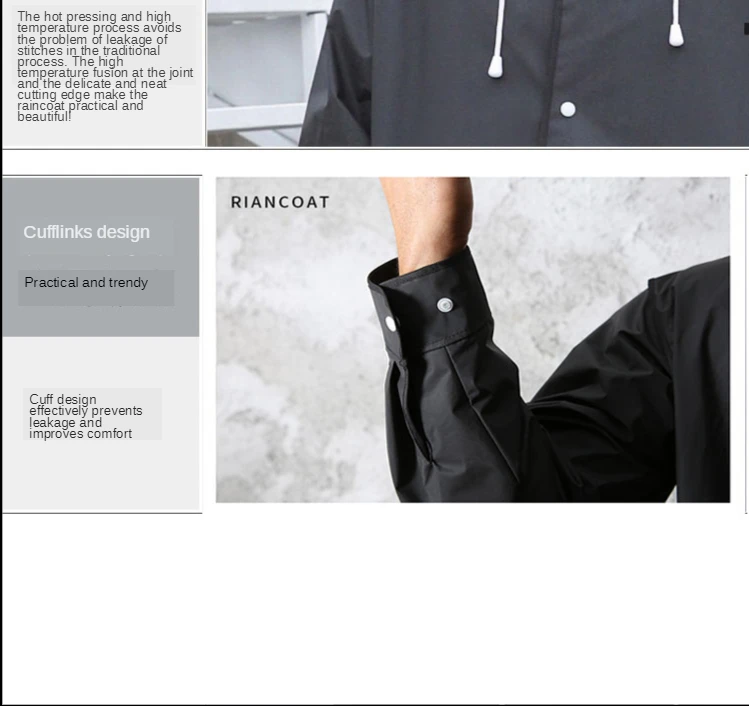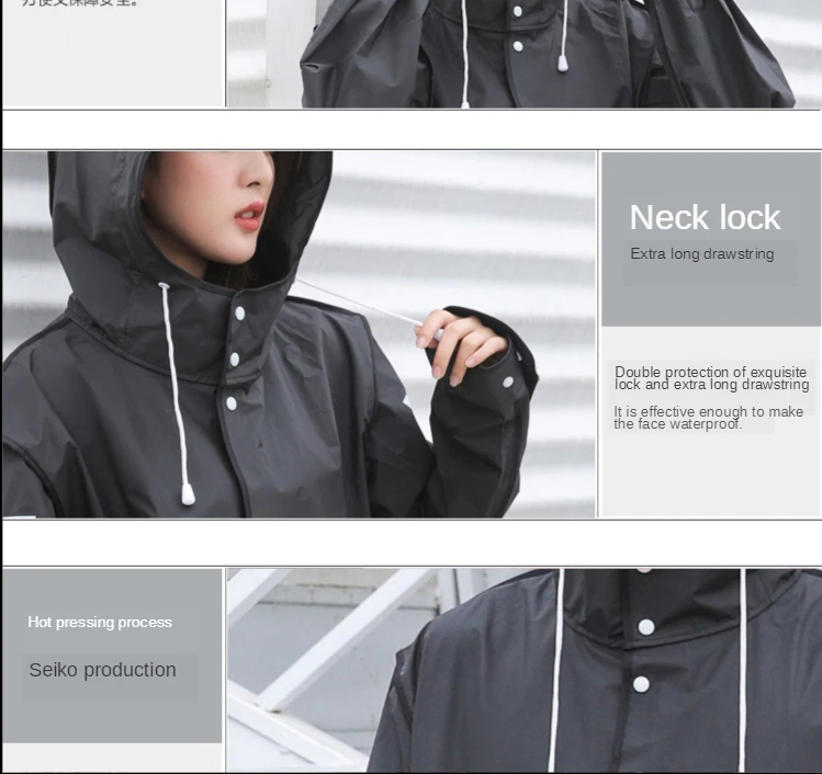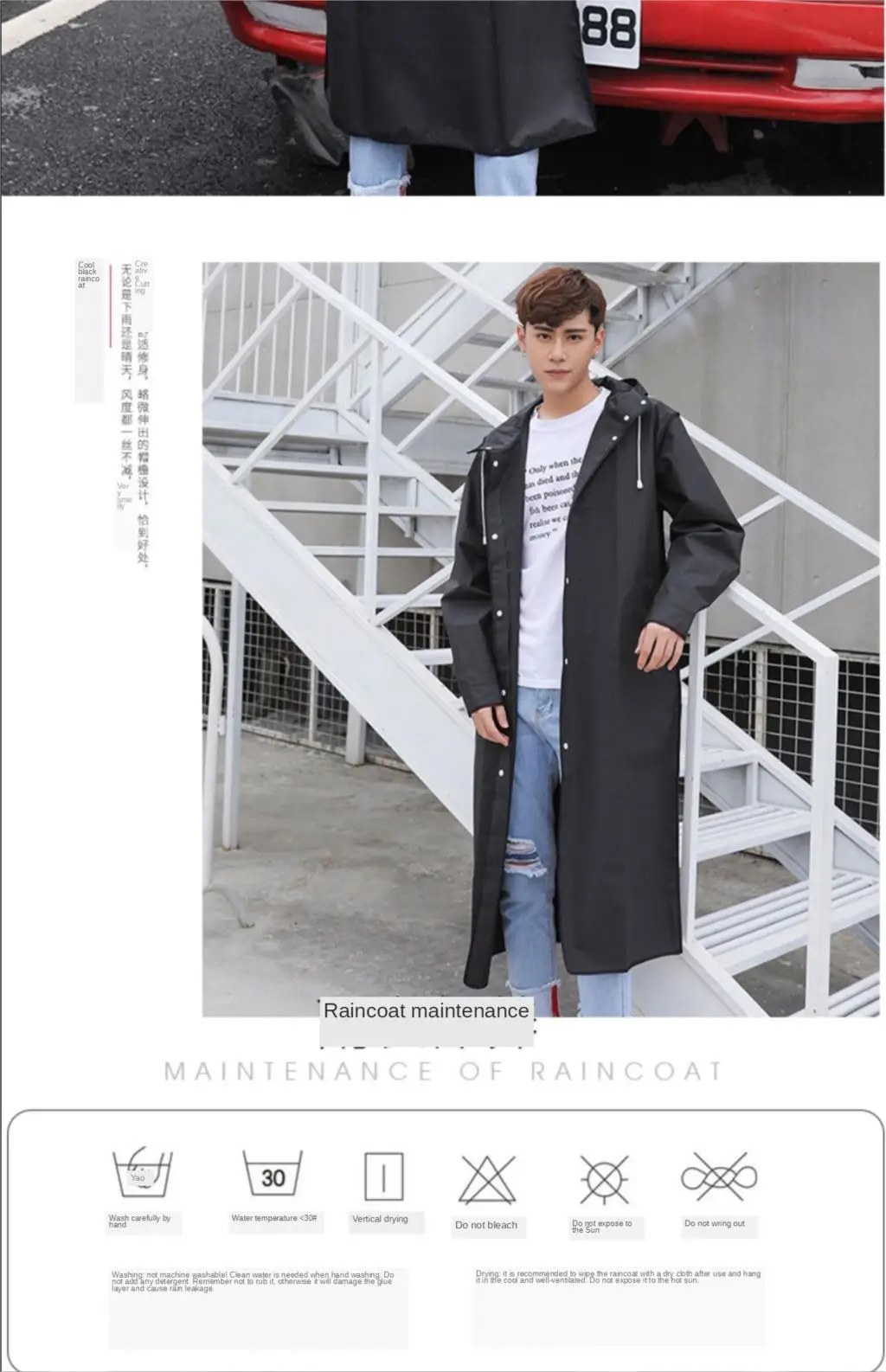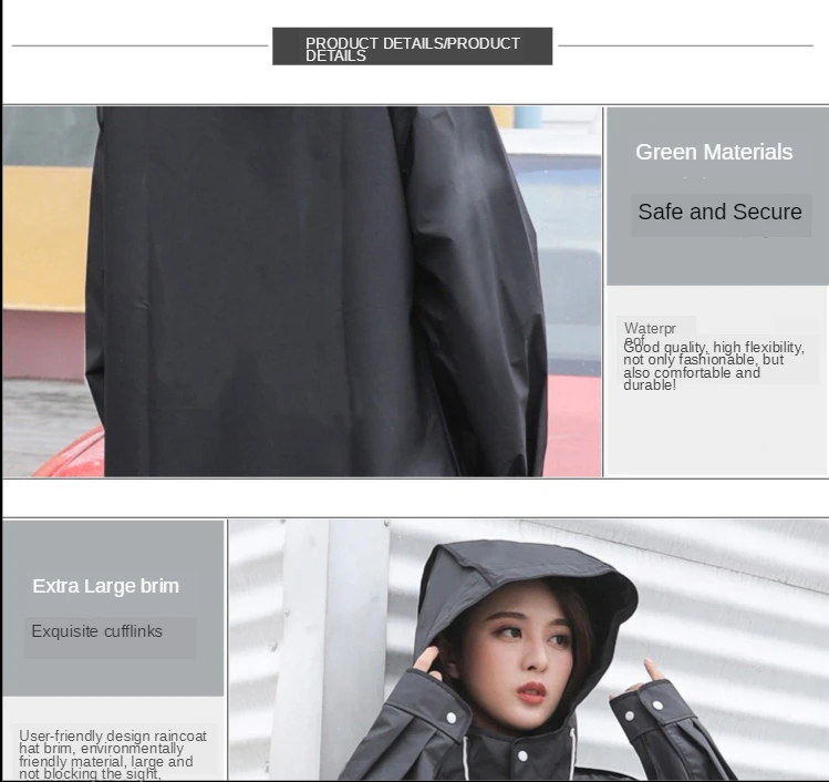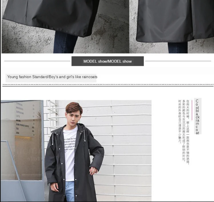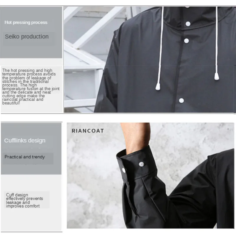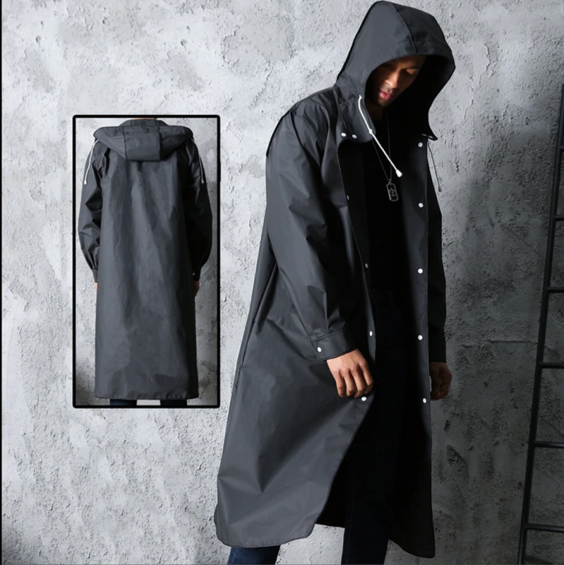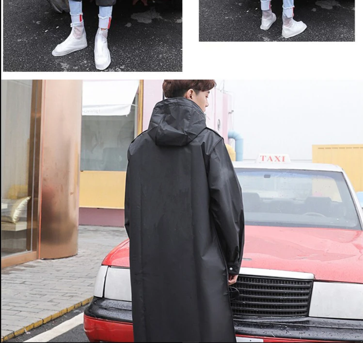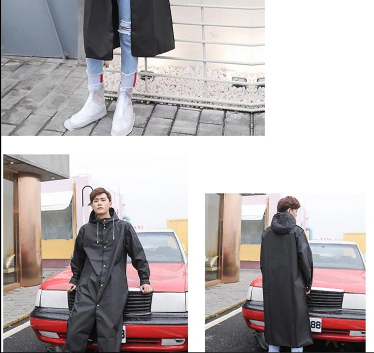Длинный Водонепроницаемый дождевик для взрослых, женский и мужской дождевик, мужской дождевик из ЭВА, черный плотный дождевик с капюшоном, пончо