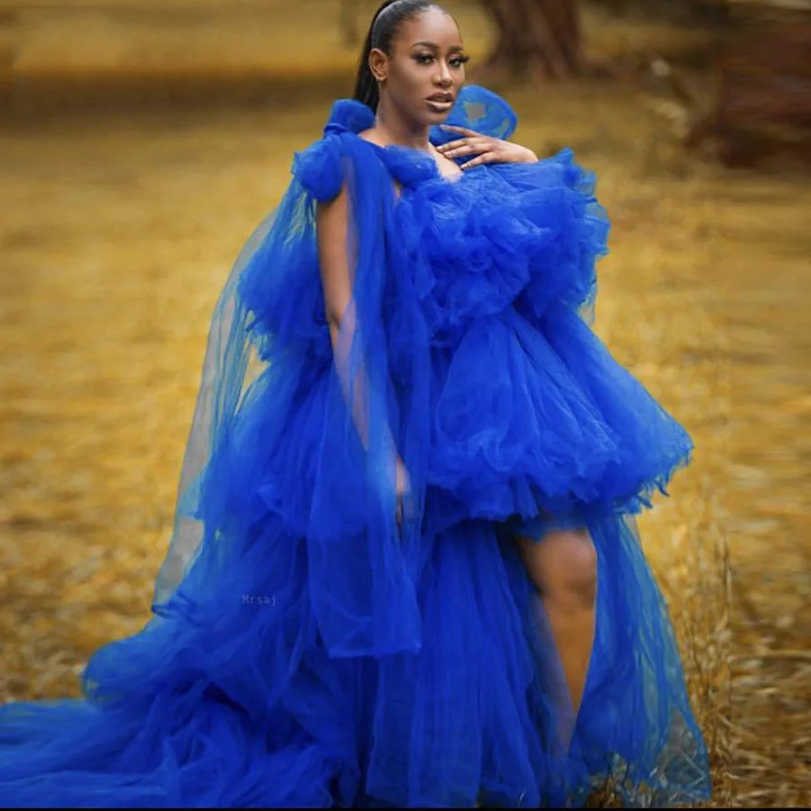 Элегантные тюлевые халаты для беременных со шлейфом, пышные рукава,...