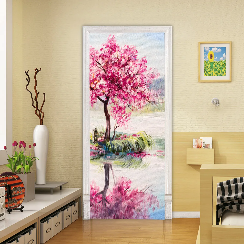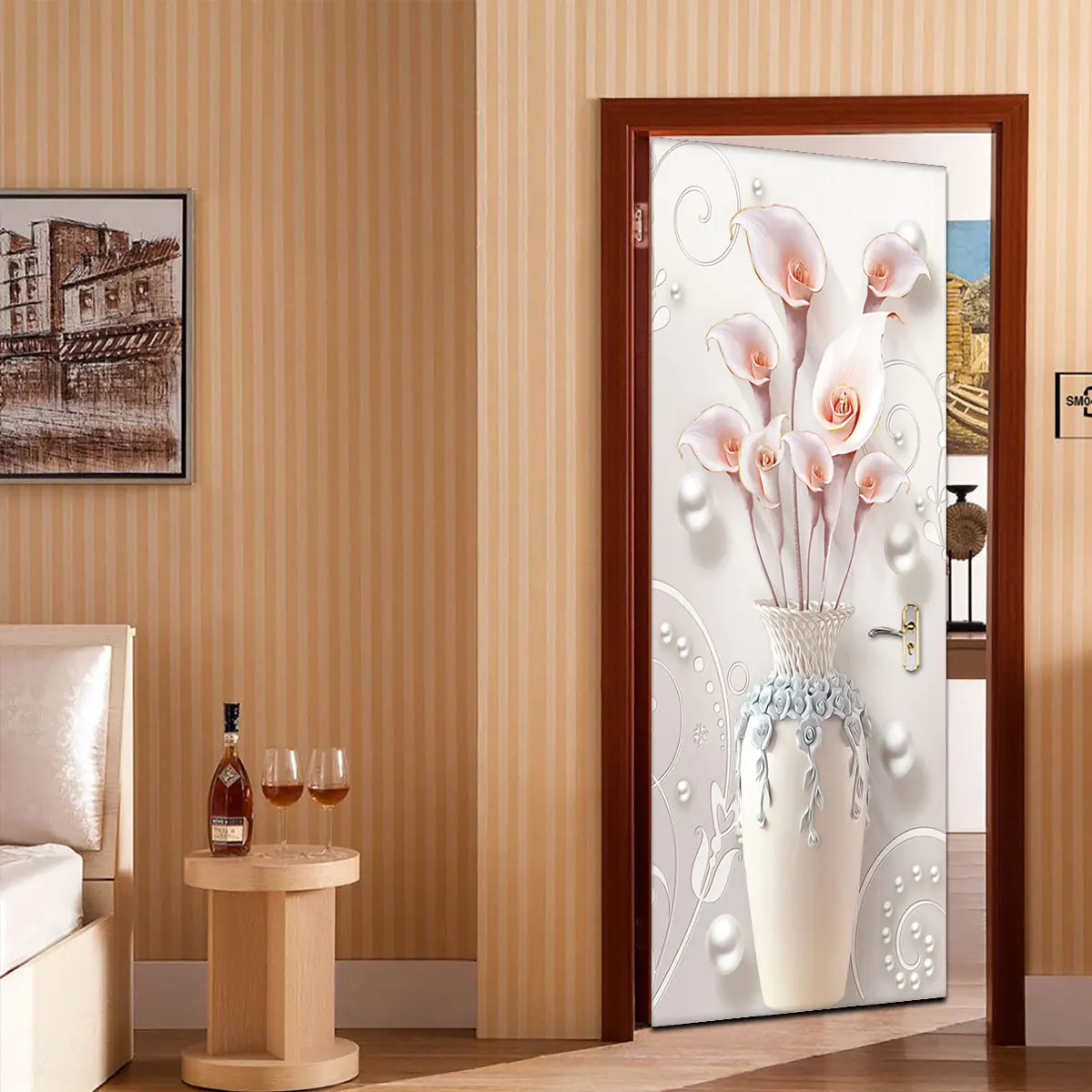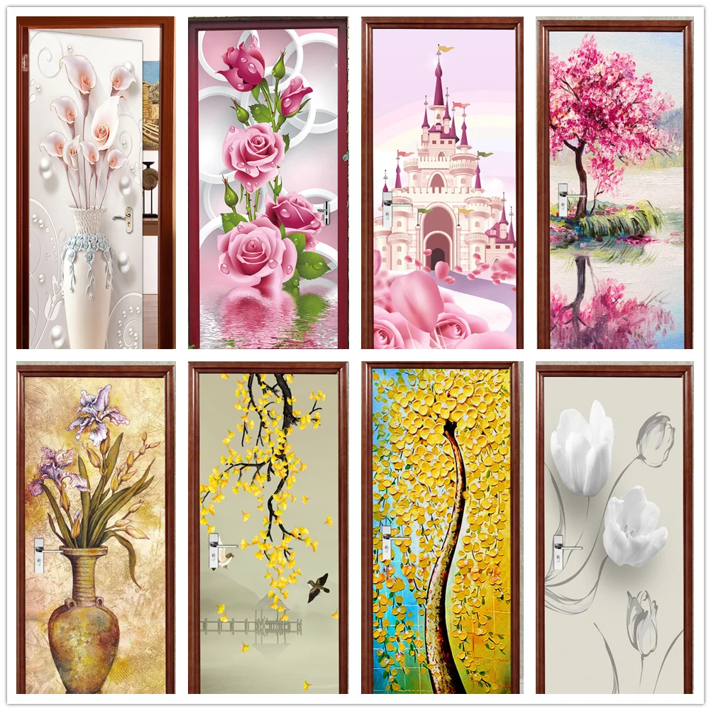 Цветочная наклейка на дверь в спальню, аксессуары для украшения комнаты, водостойкая клейкая наклейка для девочек-подростков, роспись на бумаге