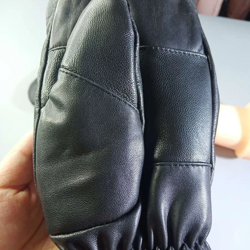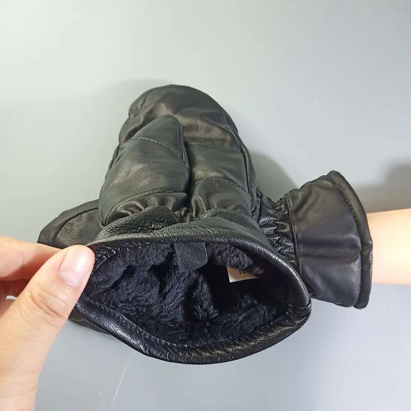 Новые зимние теплые варежки из натуральной кожи для мужчин 3-слойные плотные варежки из овечьей кожи и флиса мужские уличные теплые варежки из хлопка
