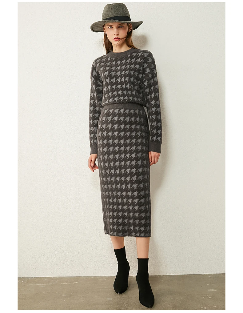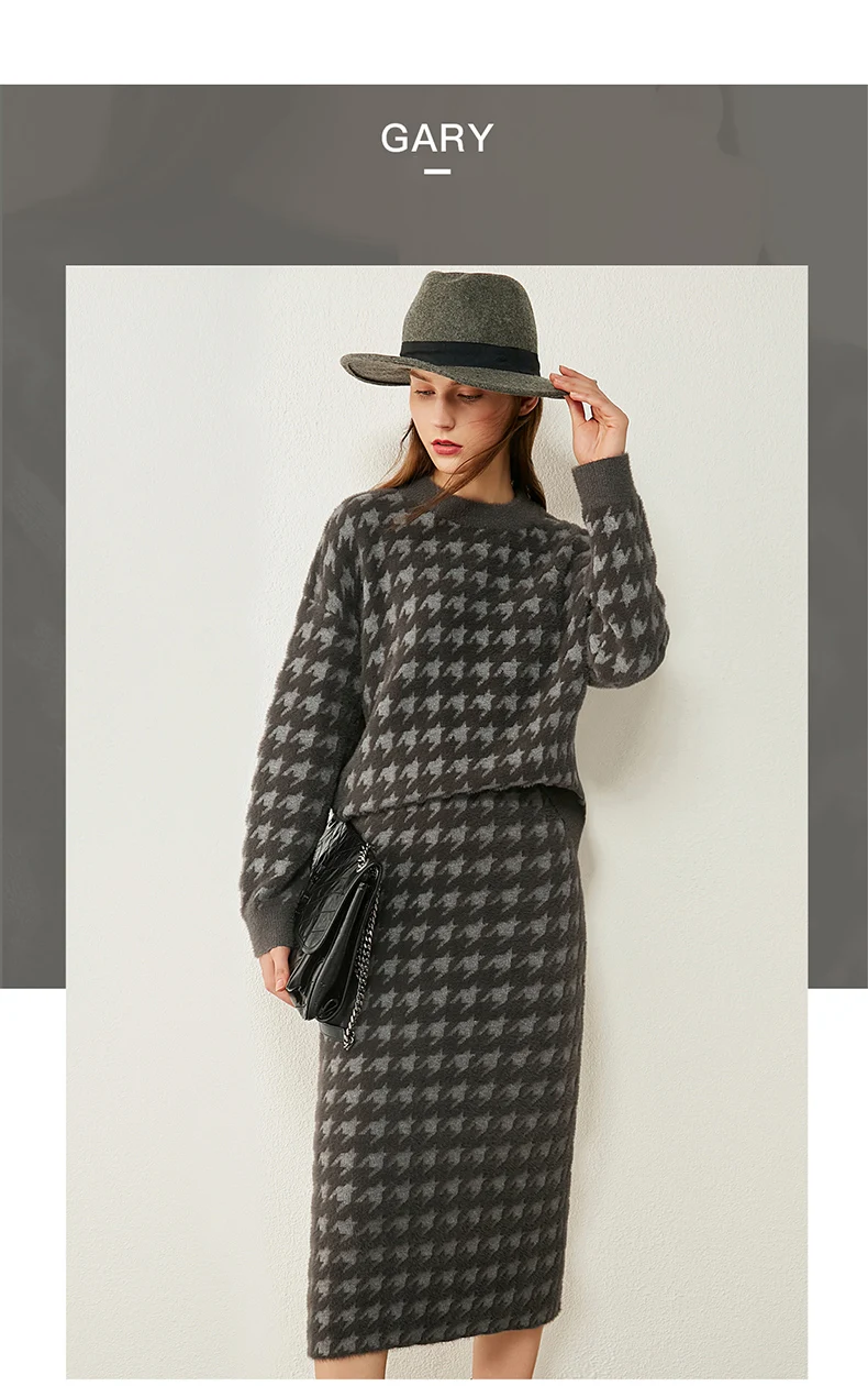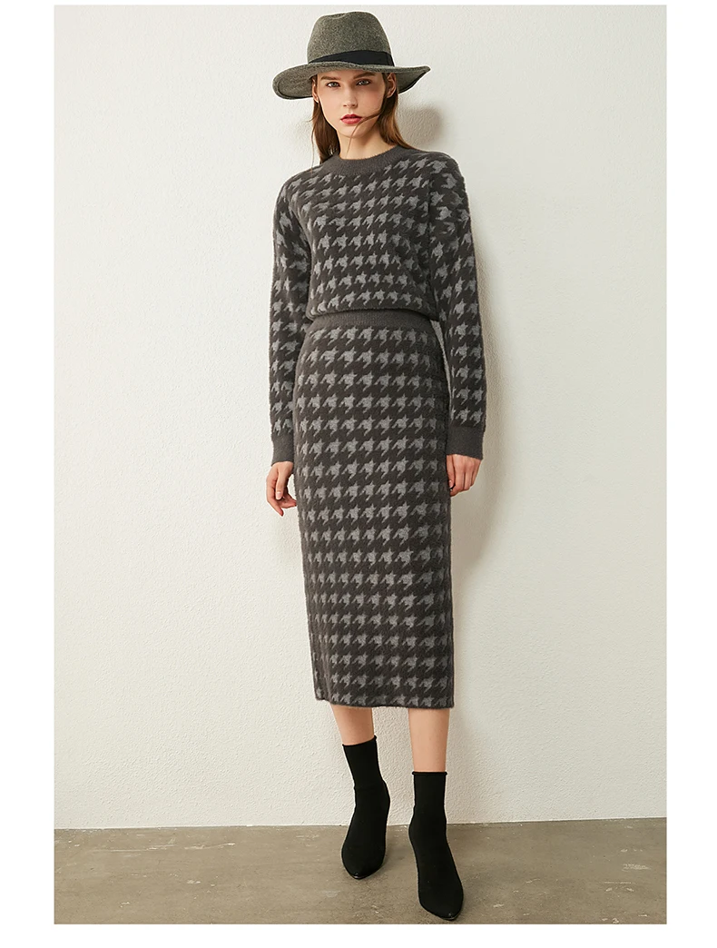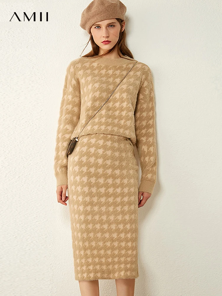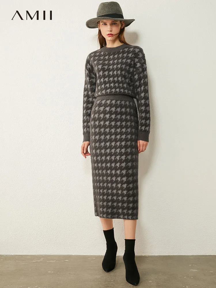 Женский костюм с юбкой AMII, свободный свитер с воротником гусиная лапка и высокой талией, Осень-зима, 12070372