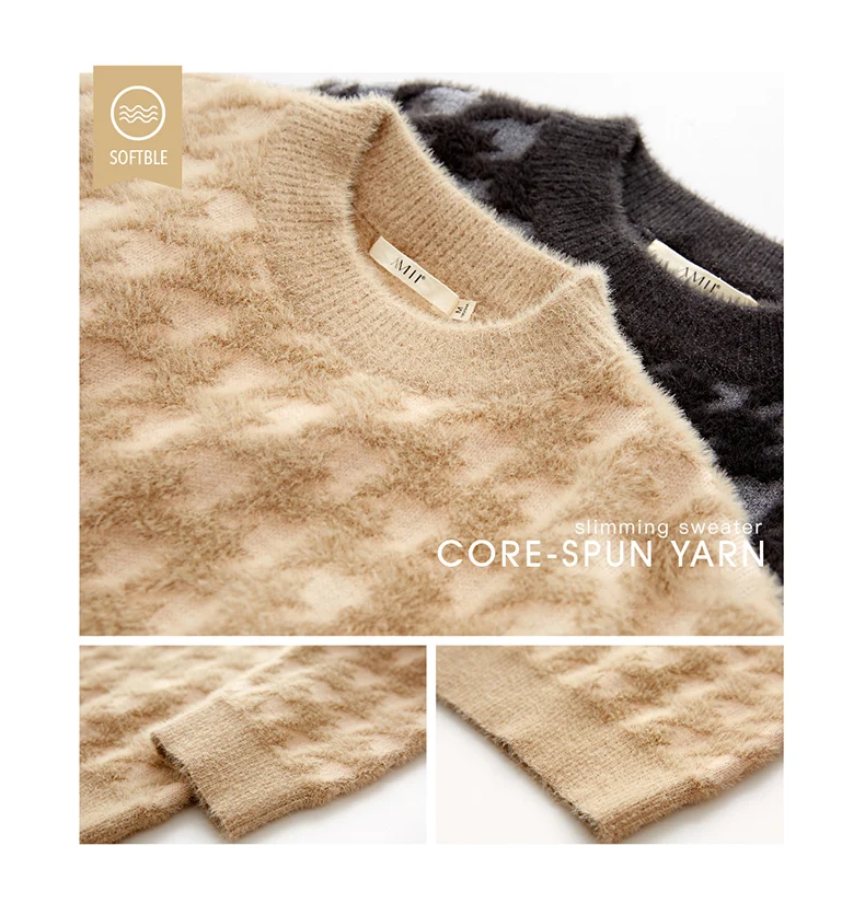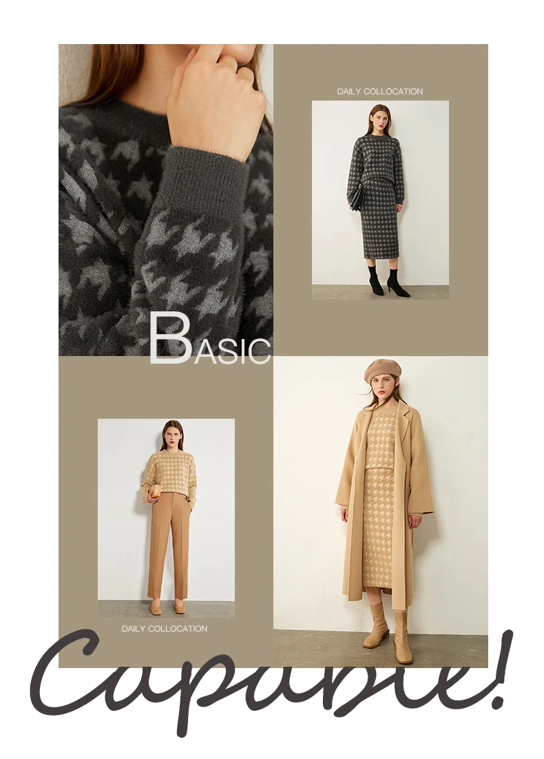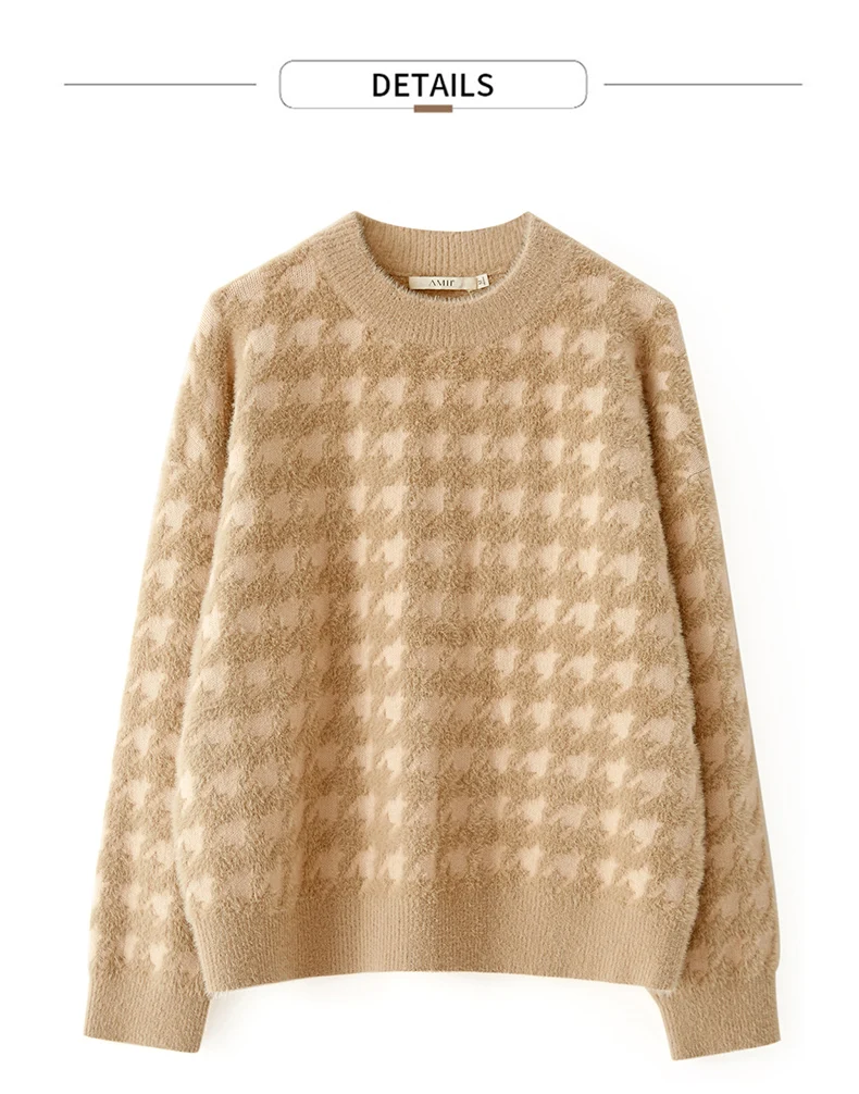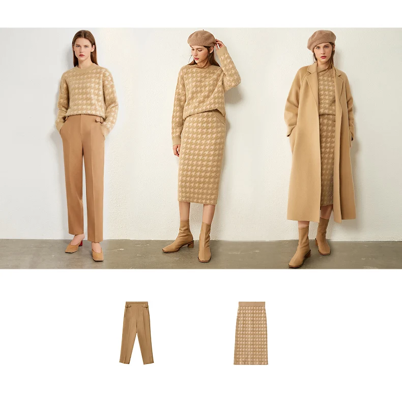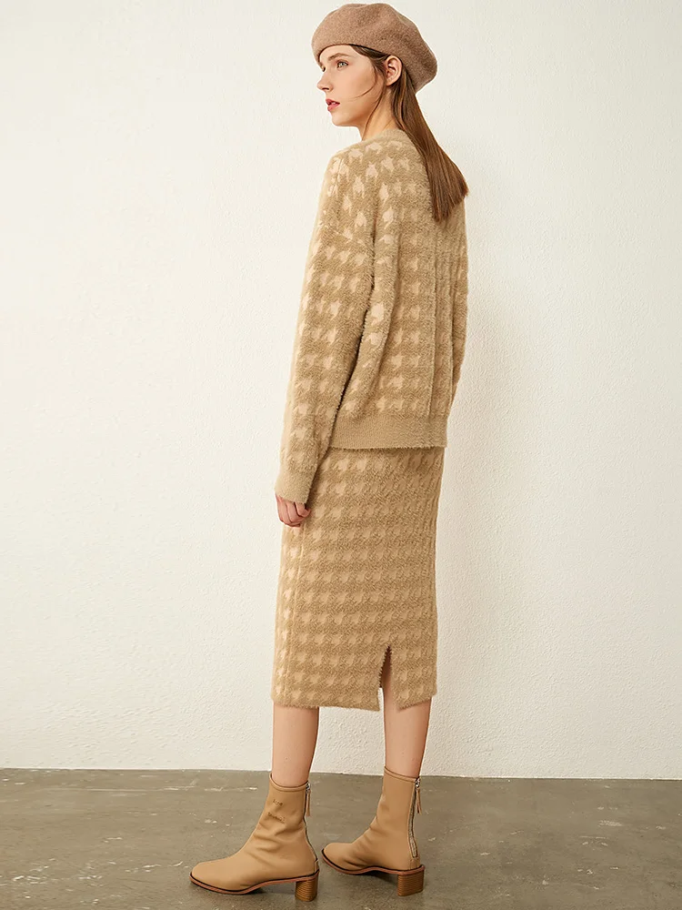 Женский костюм с юбкой AMII, свободный свитер с воротником гусиная лапка и высокой талией, Осень-зима, 12070372
