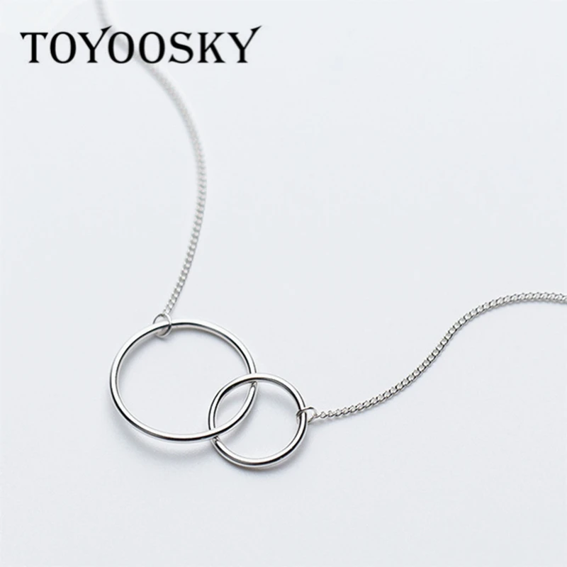 Ожерелье из стерлингового серебра 925 пробы, женский кулон с двойными кругами, двухсторонний чокер, ожерелья и подвески для дочки и мамы