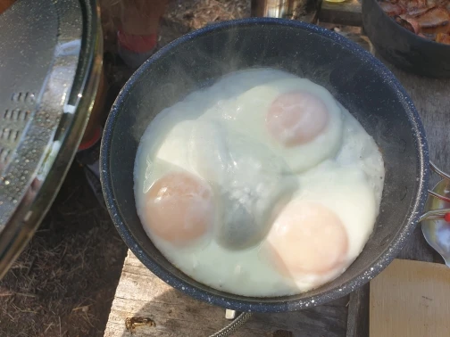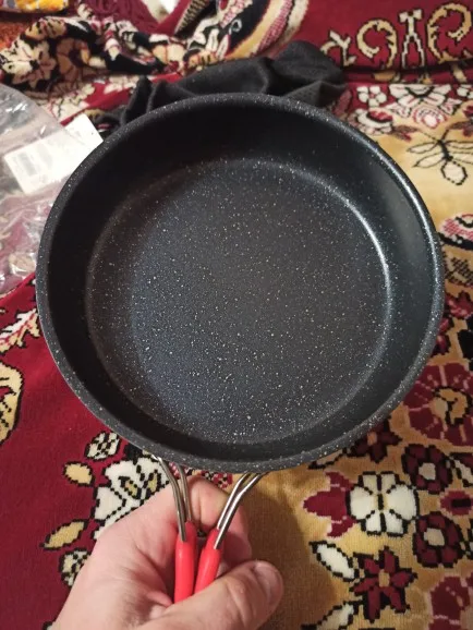Внешне сковородка выглядить замечательно, дно вроде не тонкое, стенки тоже вроде нормальные. Купил эту сковородку на замену другой из набора посуды для похода, разница между сковородкой из набора и этой сковородкой около сантиметра, в общем на замену пойдет, надо только что-то подкладывать внутрь сковородки чтоб не поцарапать покрытие кастрюлей.