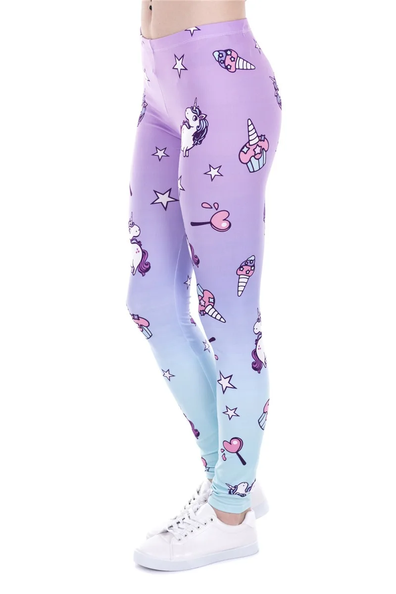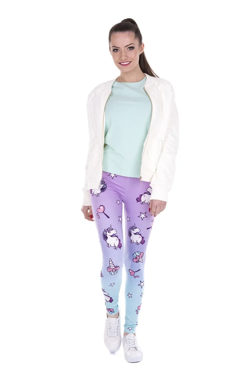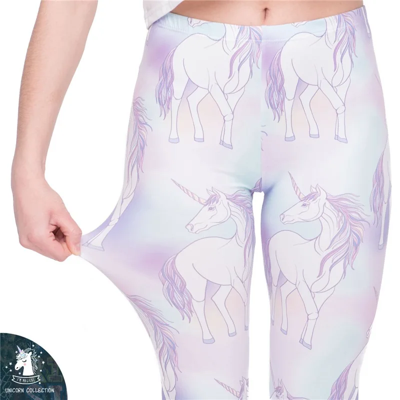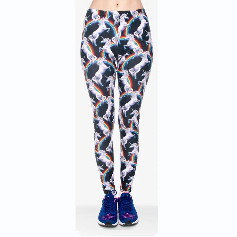 Модные леггинсы, женская одежда для фитнеса, брюки с высокой талией, женские узкие леггинсы с единорогом
