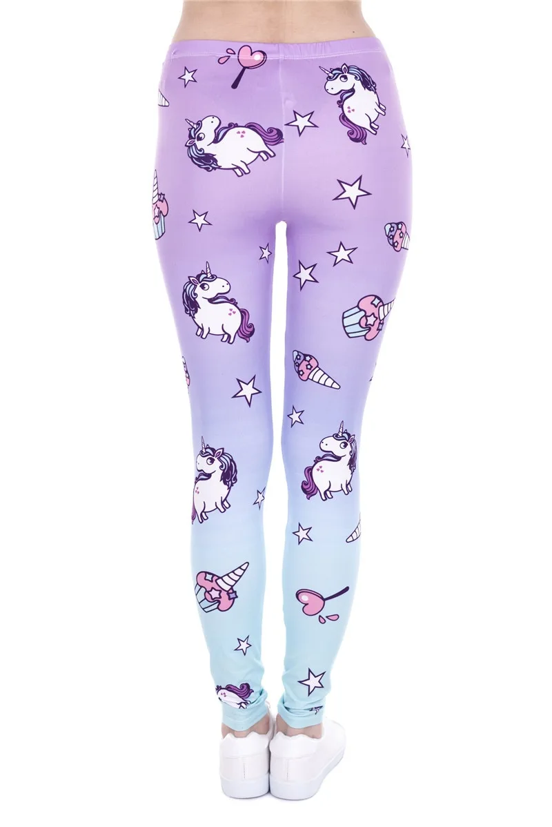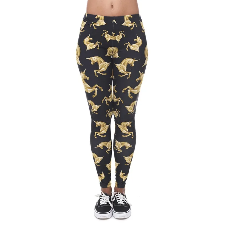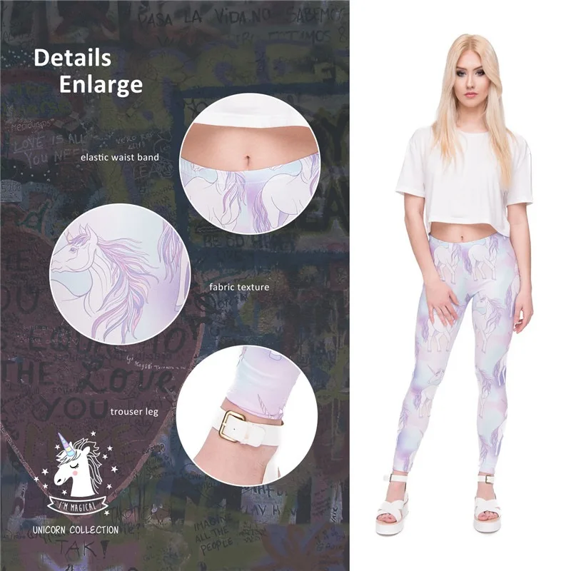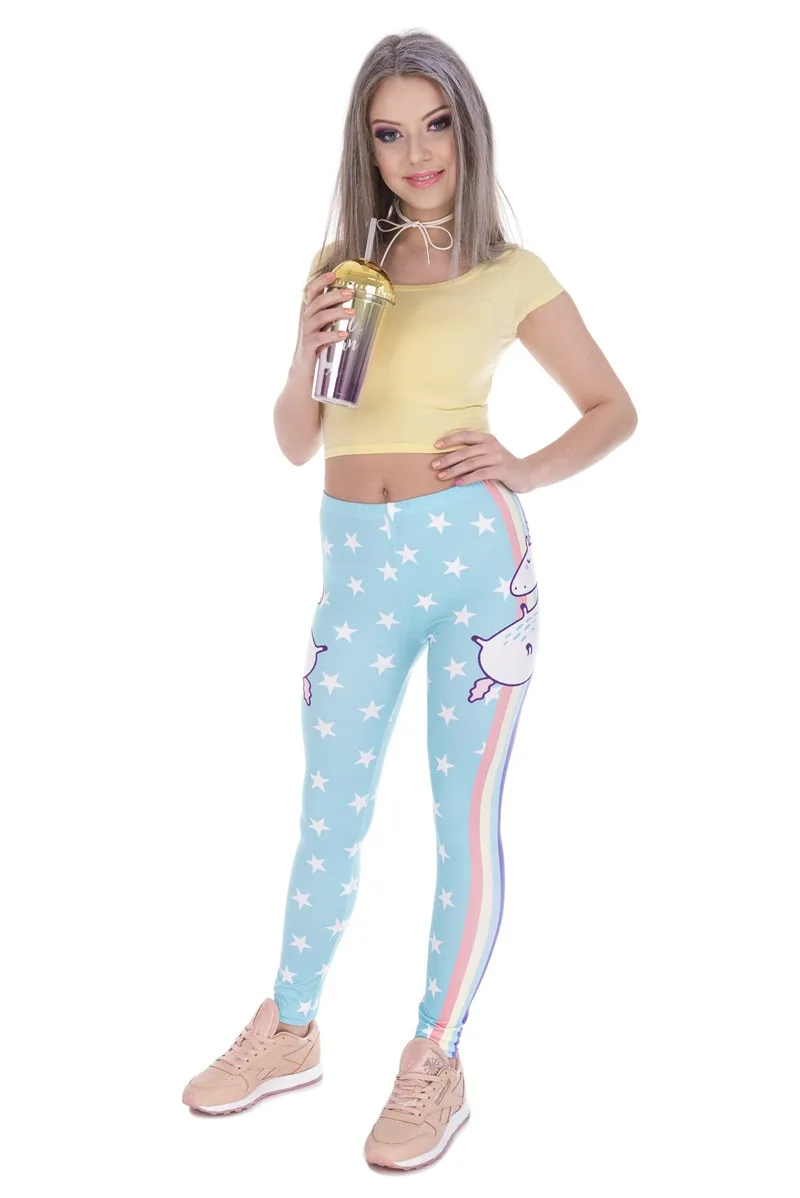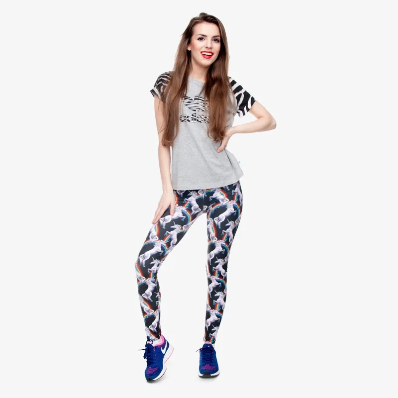 Модные леггинсы, женская одежда для фитнеса, брюки с высокой талией, женские узкие леггинсы с единорогом