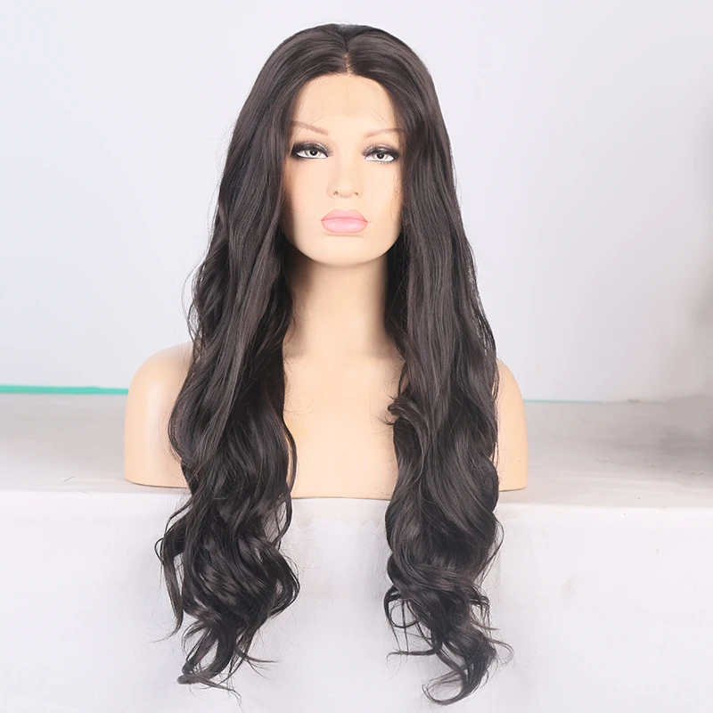 AIMEYA волнистые человеческие волосы синтетический Синтетические волосы на кружеве Парики высокого Температура длинной волны парик шнурка для Для женщин коричневый парики с пробор