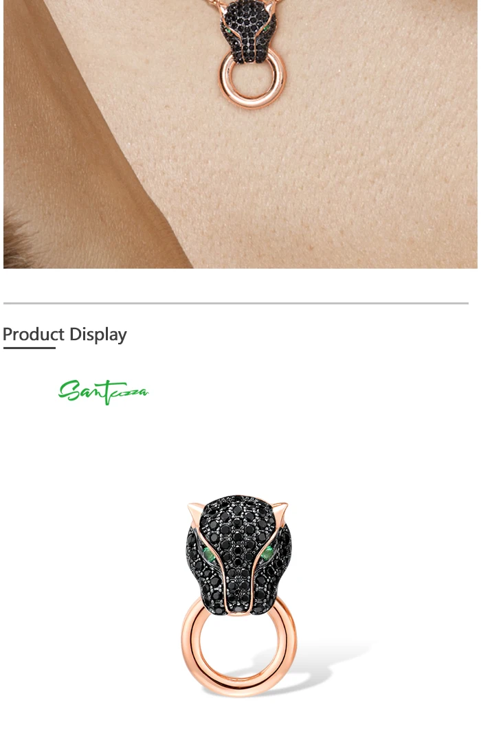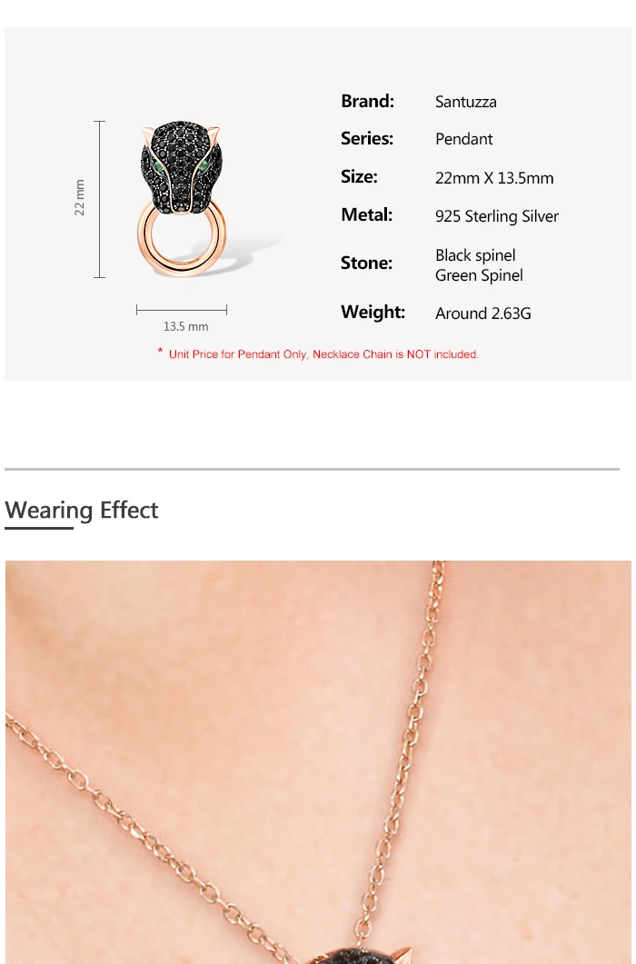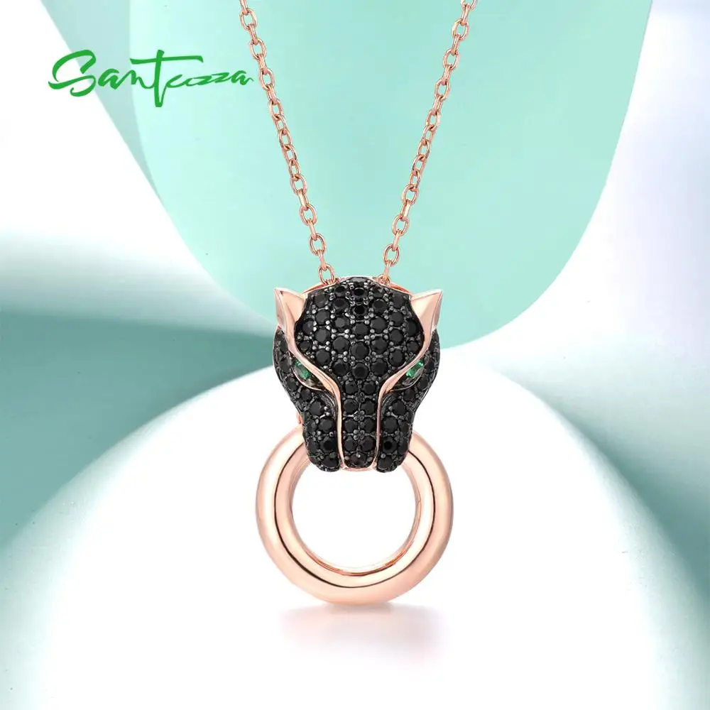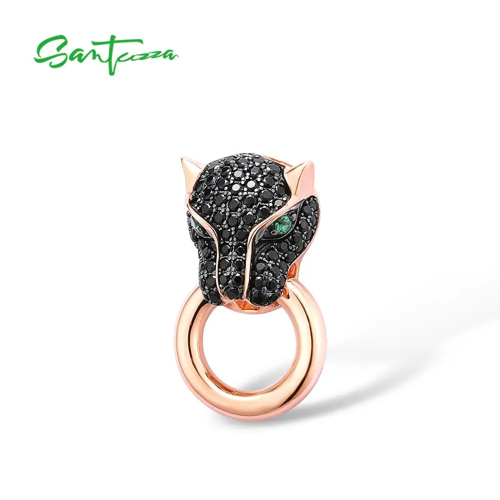 Женская серебряная подвеска SANTUZZA, из серебра 925 пробы со сверкающим черным и зеленым шпинелем, леопардовым принтом