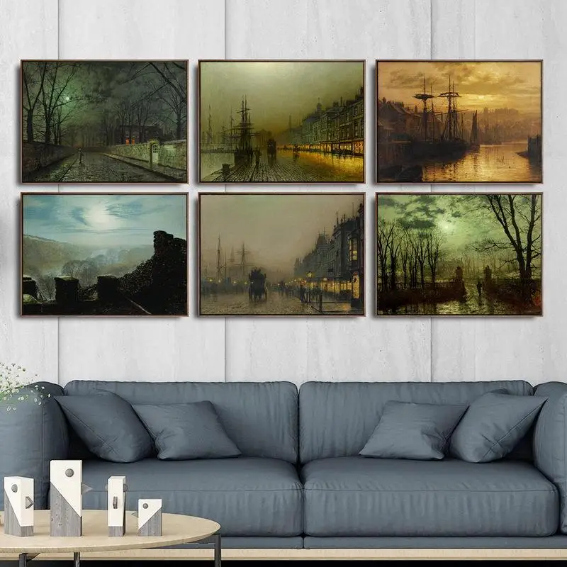 Домашний декор, художественные настенные картины для гостиной, искусственные картины, британский Джон Аткинсон гримшоу порт
