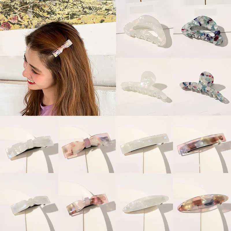 Модные полукруглые тонкие длинные заколки для волос из ацетата, Женские Геометрические заколки для волос с мраморным принтом, заколки, аксессуары для волос для девочек