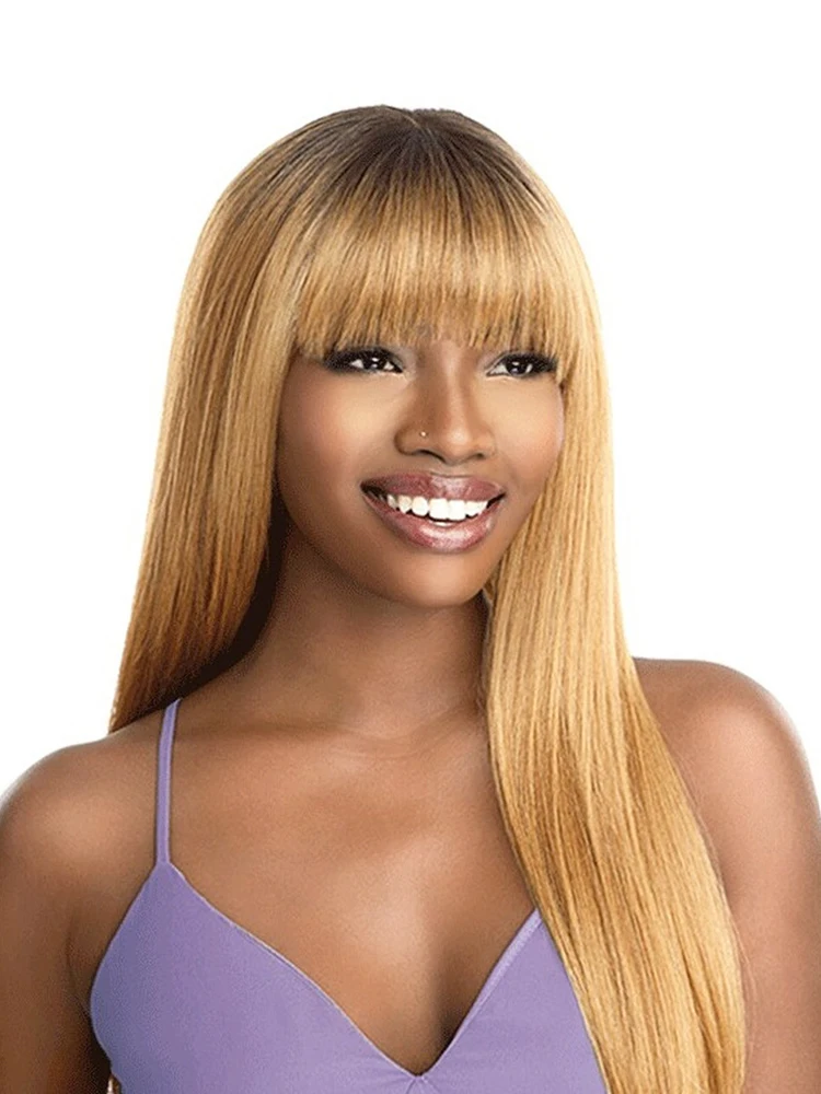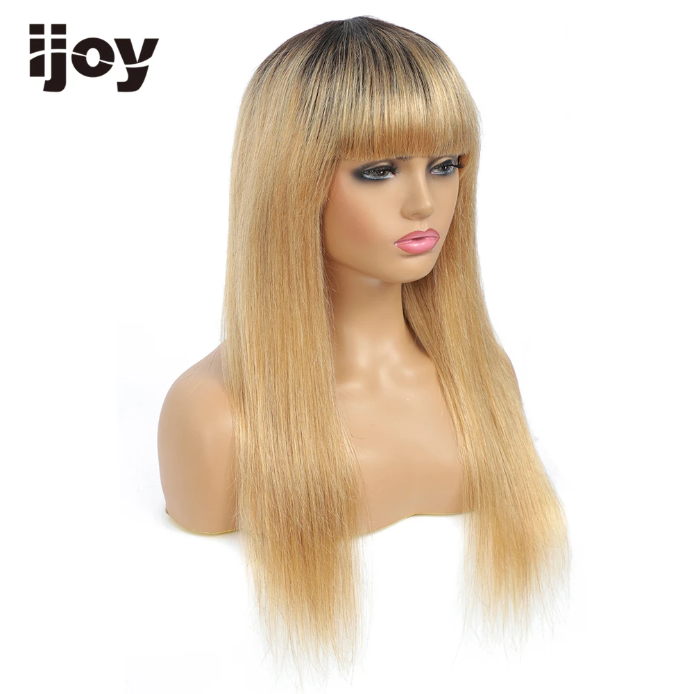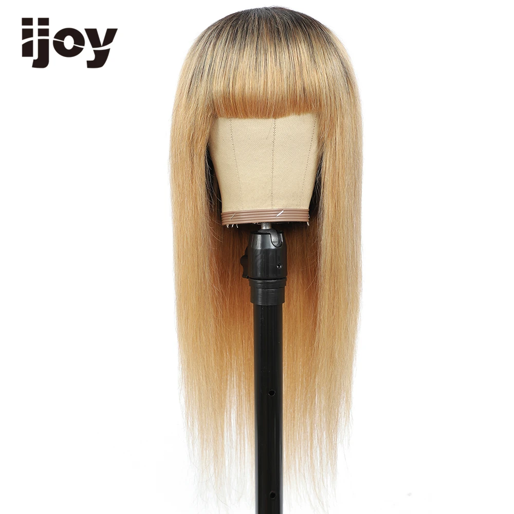 Парик из натуральных волос с челкой, прямые волосы, цветной Омбре, медовый блонд, бразильские волосы, полностью машинные парики для женщин, не Реми IJOY