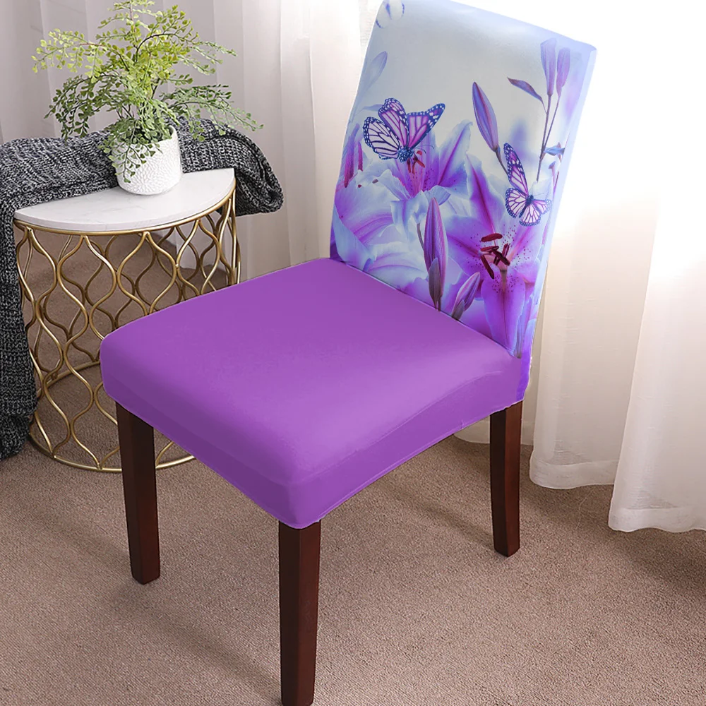 Обеденные чехлы для стульев, фиолетовая бабочка, цветок лилии, чехол для кресла спандекс, свадебные принадлежности