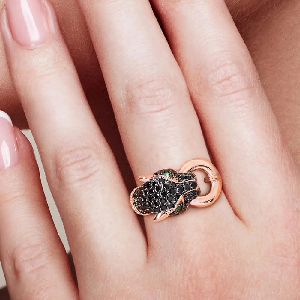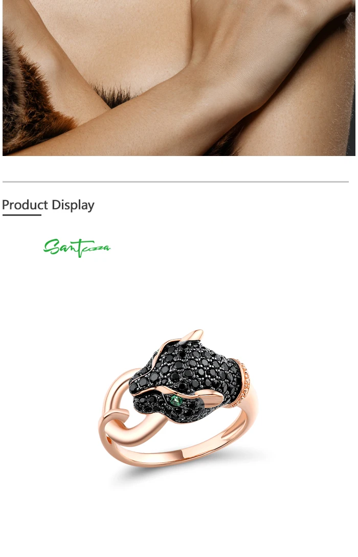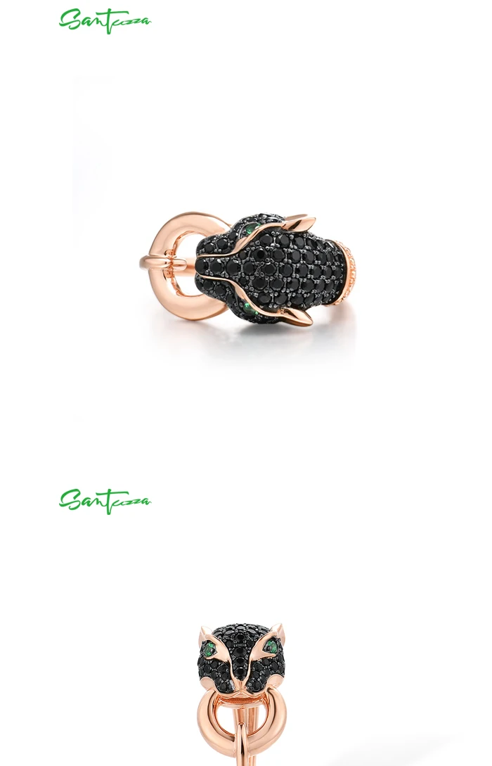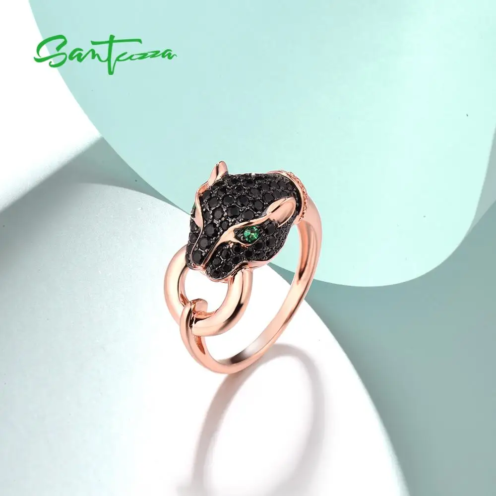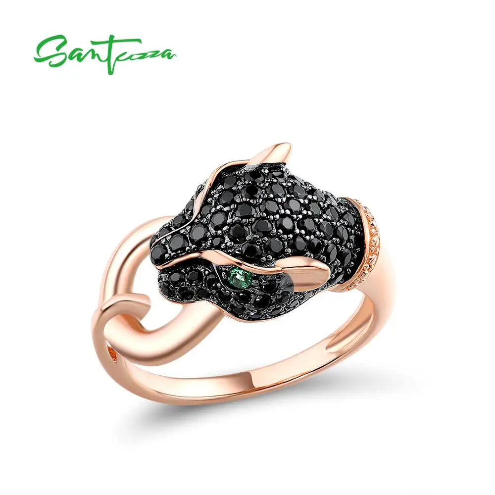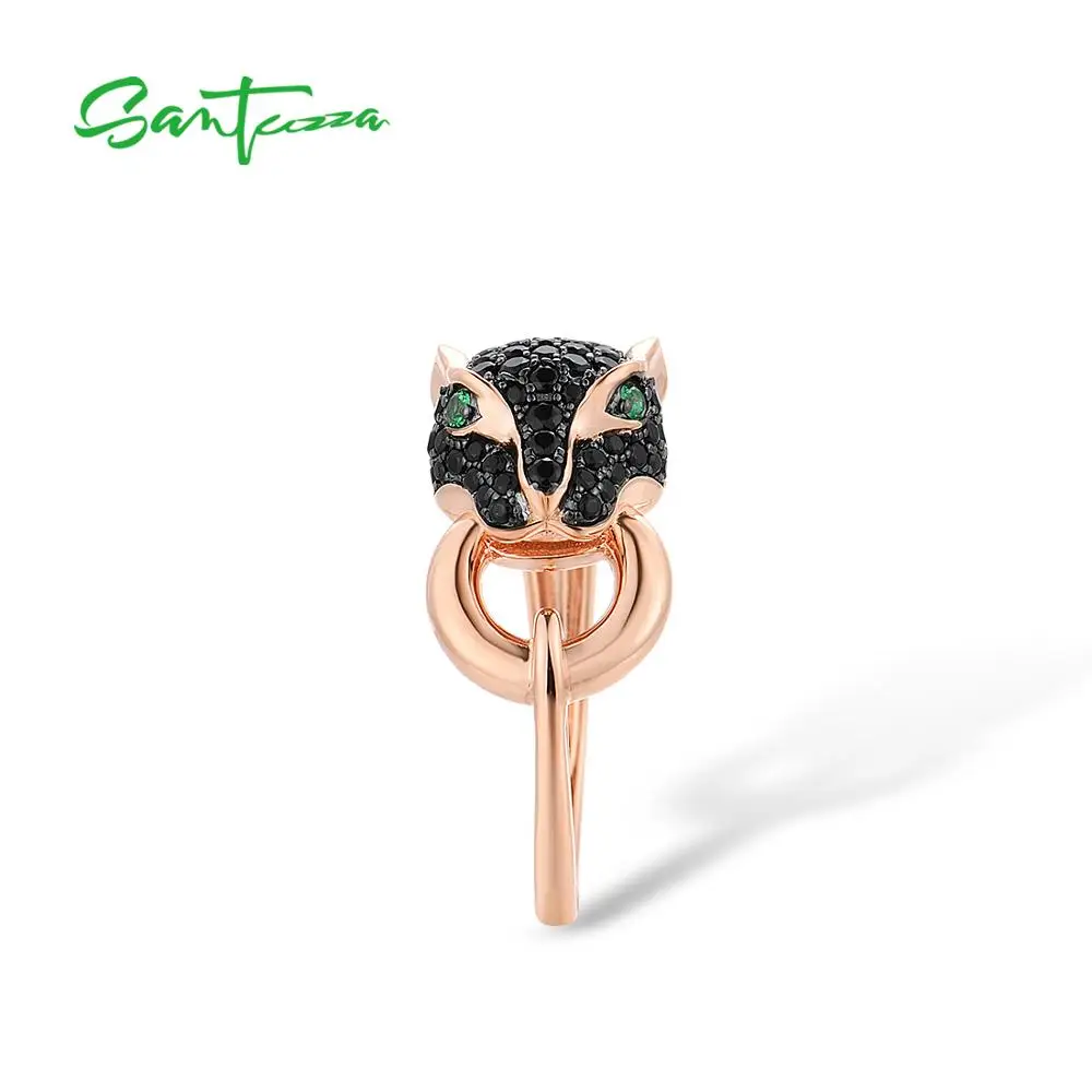 Женское серебряное кольцо SANTUZZA, из серебра 925 пробы с блестящей черной зеленой шпинелью и леопардовой пантерой, модные ювелирные украшения для вечерние