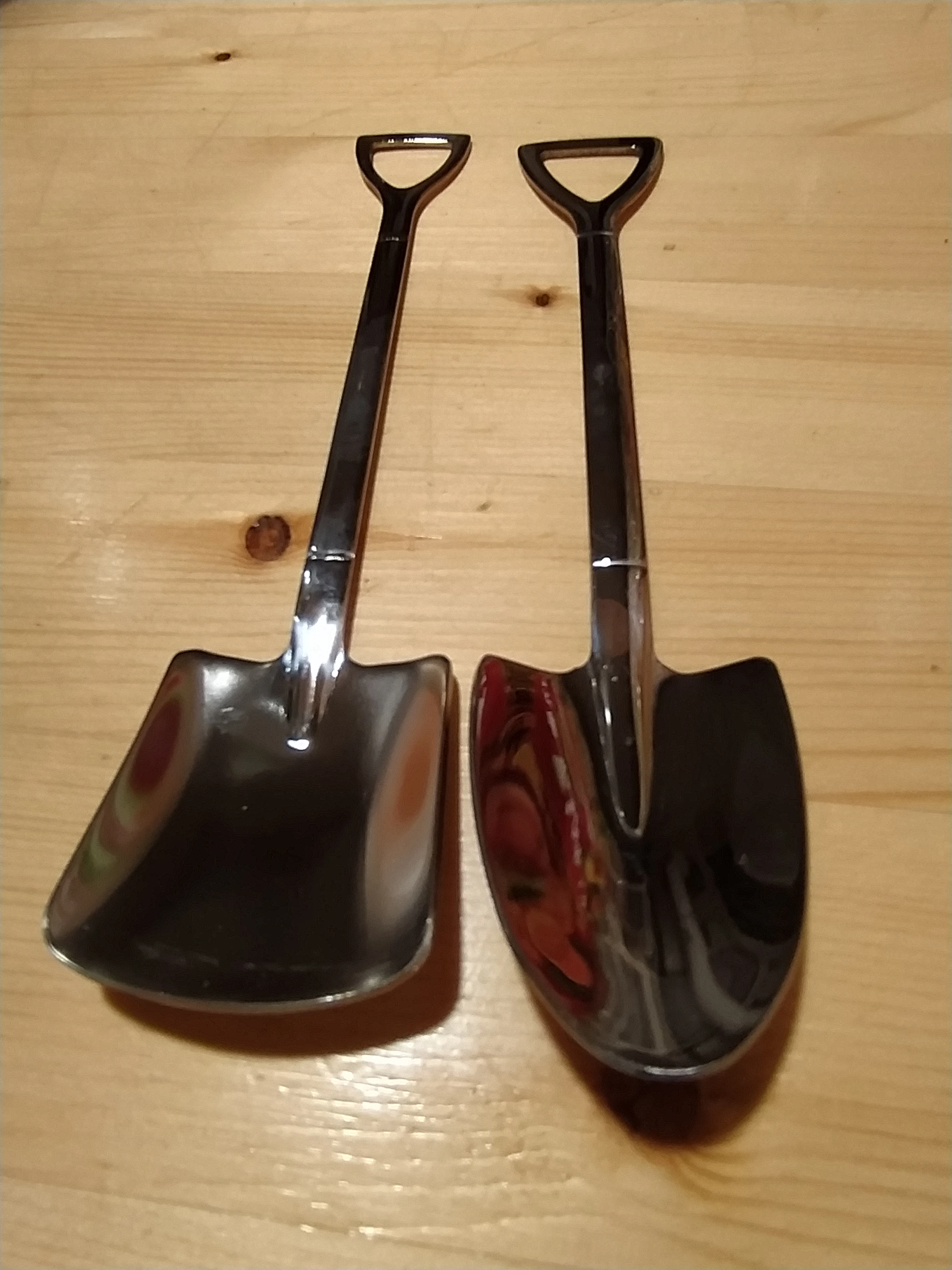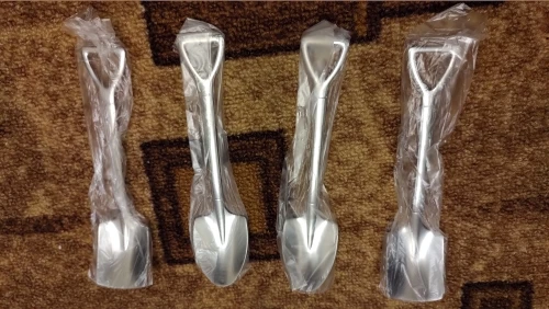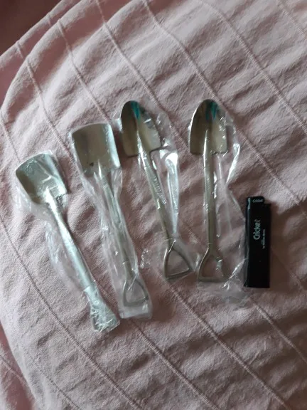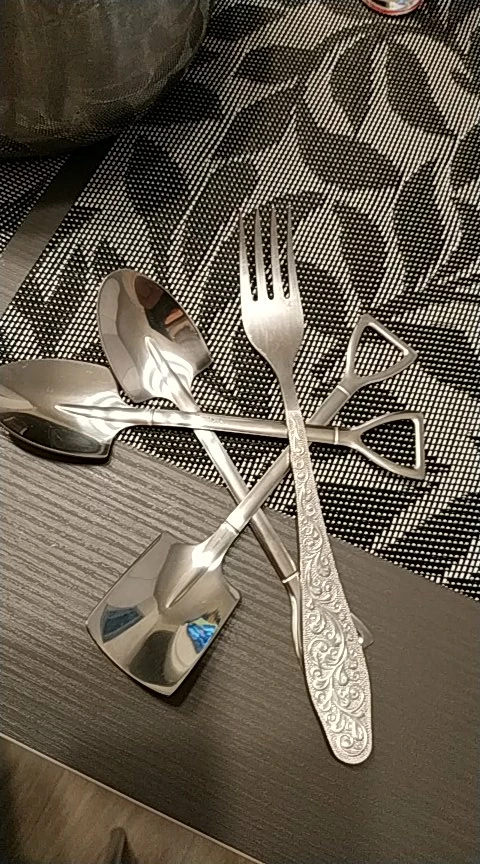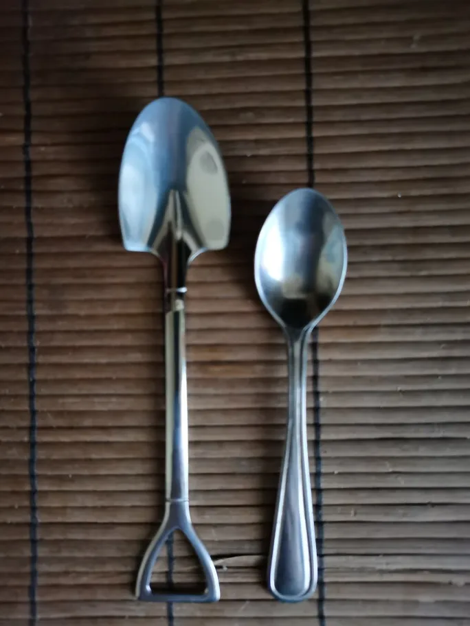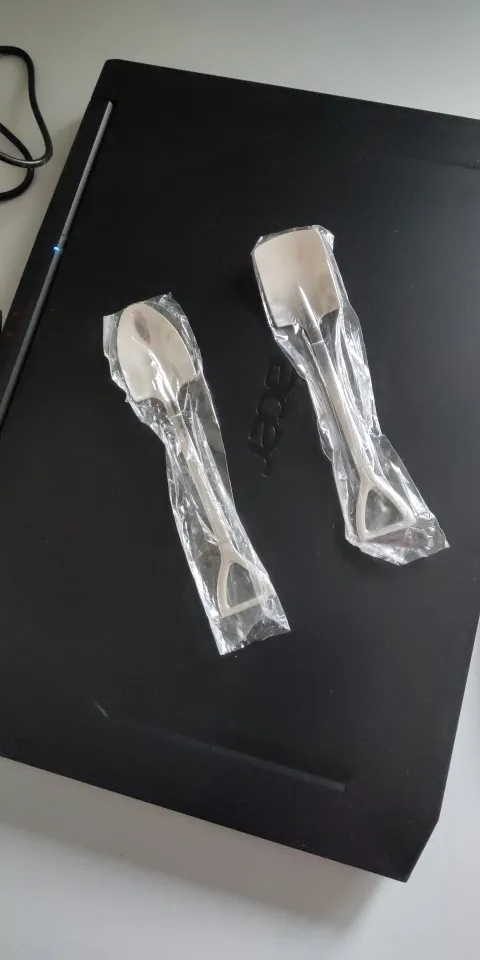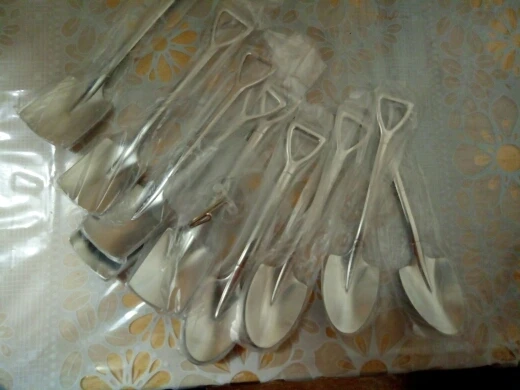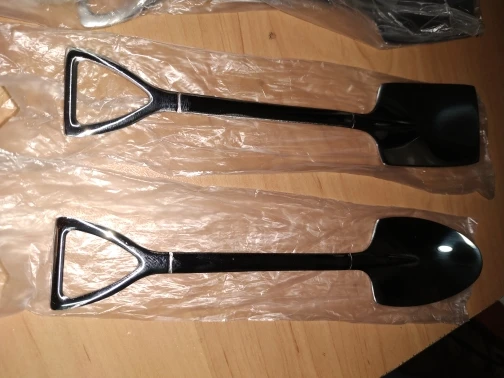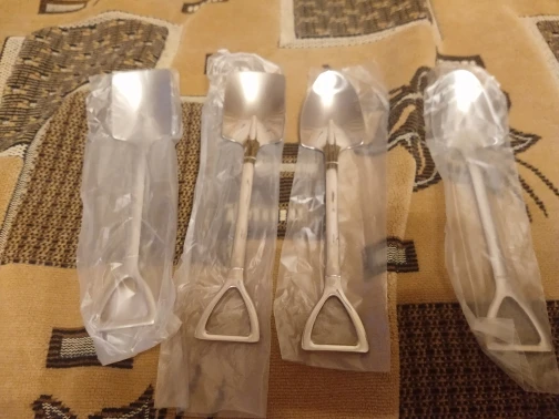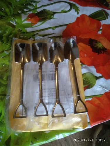 Прикольные ложки.Уверен, поржать не раз можно будет с и над гостями по этому поводу Типо ты б на огороде так лопатой махал,как за столом херачишь.Размер как у чайной ложки.То бишь не мизерные.Лекгие.Ломать не пробовал.Но не думаю,что разваляться.В общем рекомендую тем,кто любит всякие прикольные вещичкиС наступающим!