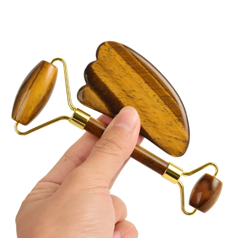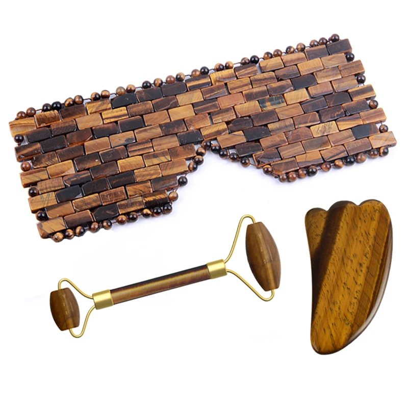 Тигровый глаз Нефритовая маска для глаз лицо нефрит для массажа роликовый набор гуаша доска натуральный камень холодная терапия сна маска для глаз инструменты для массажа лица