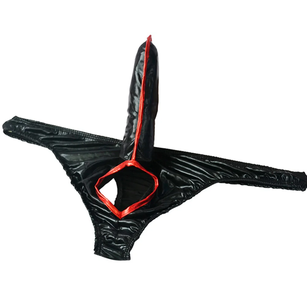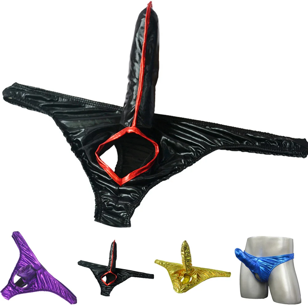 Нижнее белье для мужчин, латексные трусы, кожаные стринги с мокрым эффектом, нижнее белье с закрытым пенисом, стринги из искусственной кожи, G021, мужское нижнее белье