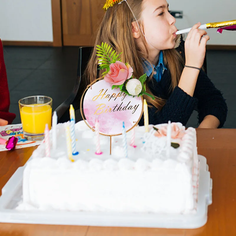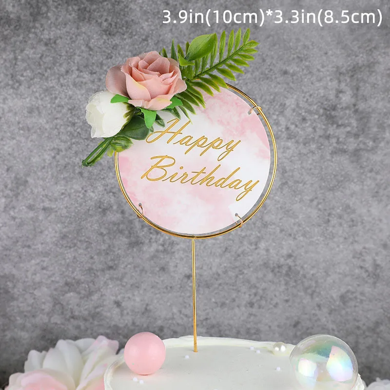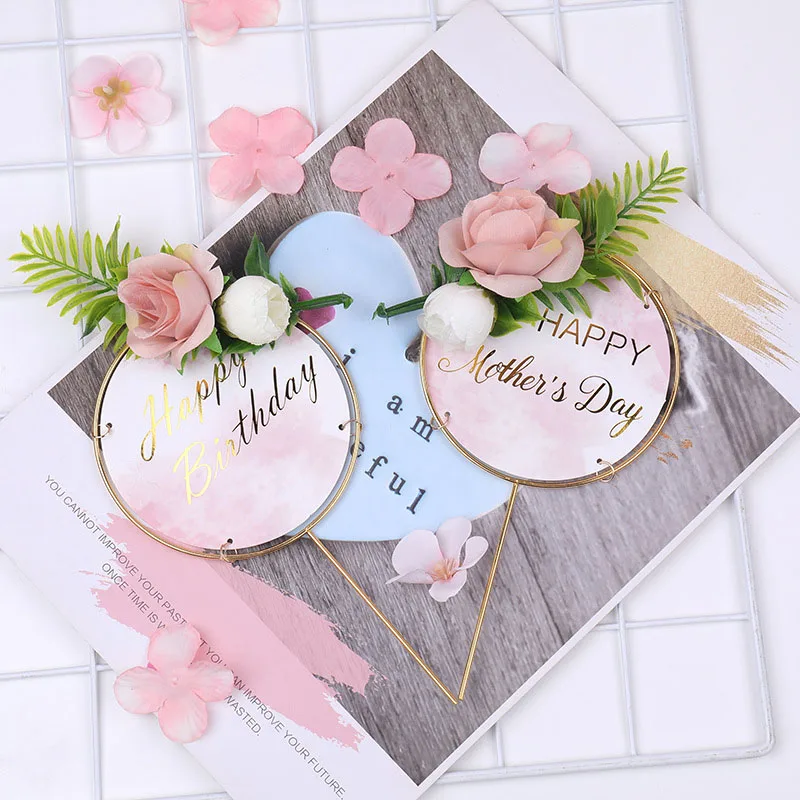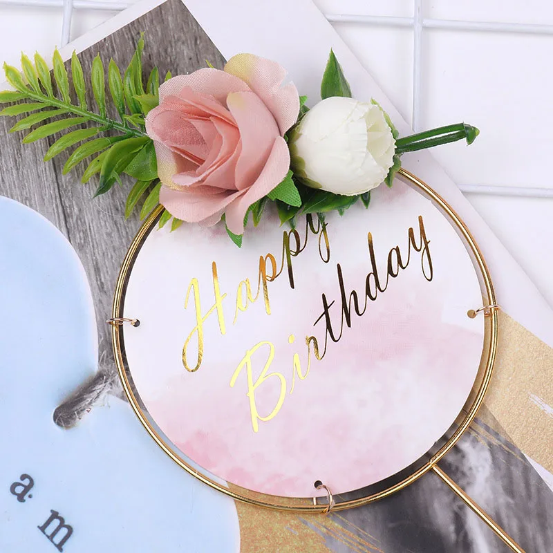Розовое железо Happy топперы для торта на день рождения с искусственными цветами для дня рождения, свадьбы, украшения для выпечки