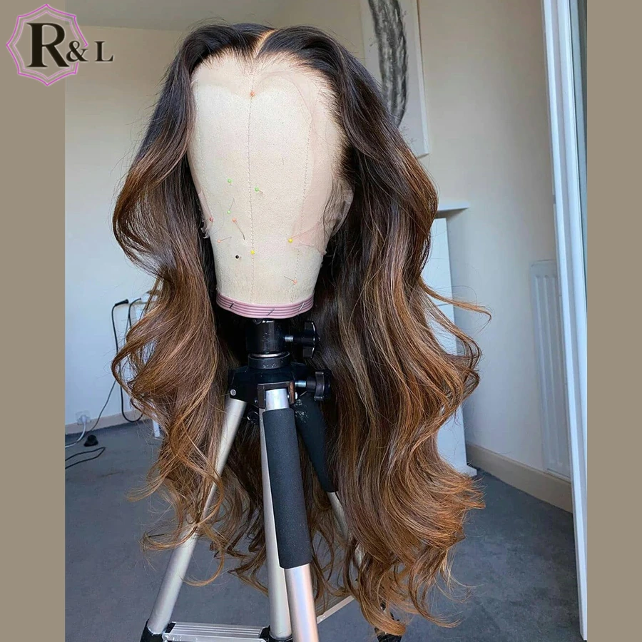 RULINDA Highlight Ombre объемные волнистые Т-образные кружевные передние человеческие волосы парики бразильские не-Реми волосы кружевные парики 180% Плотность