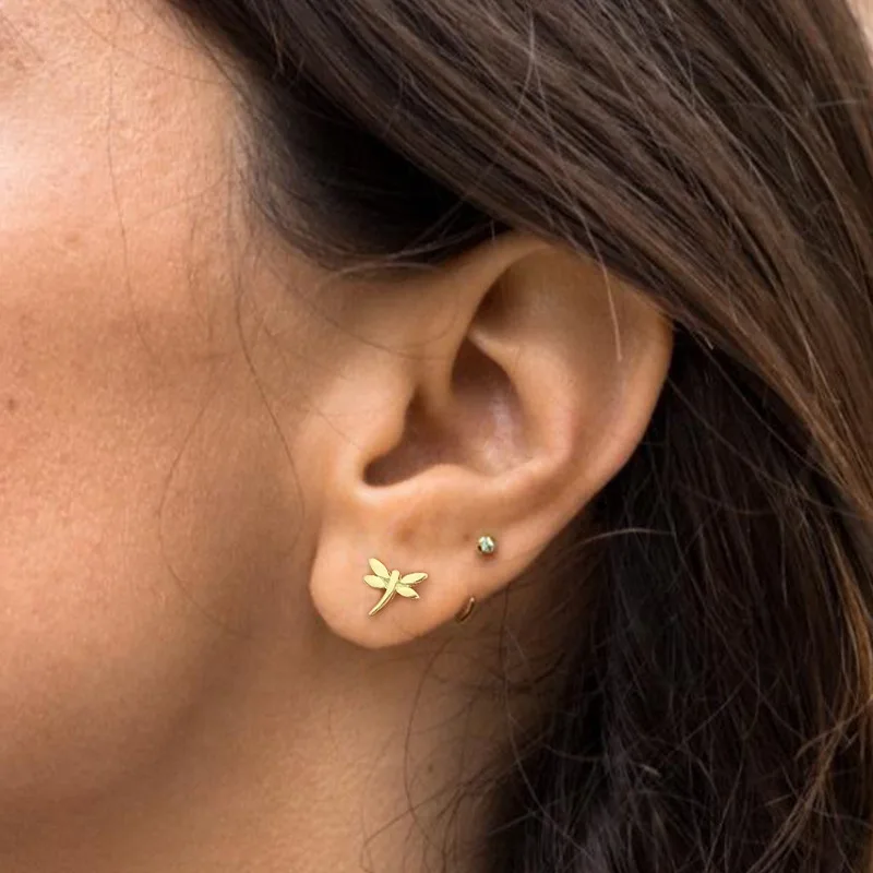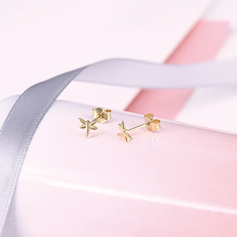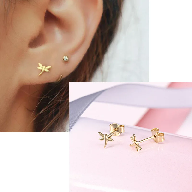 Женские мини-серьги-гвоздики в стиле стрекозы из настоящего серебра 925 пробы