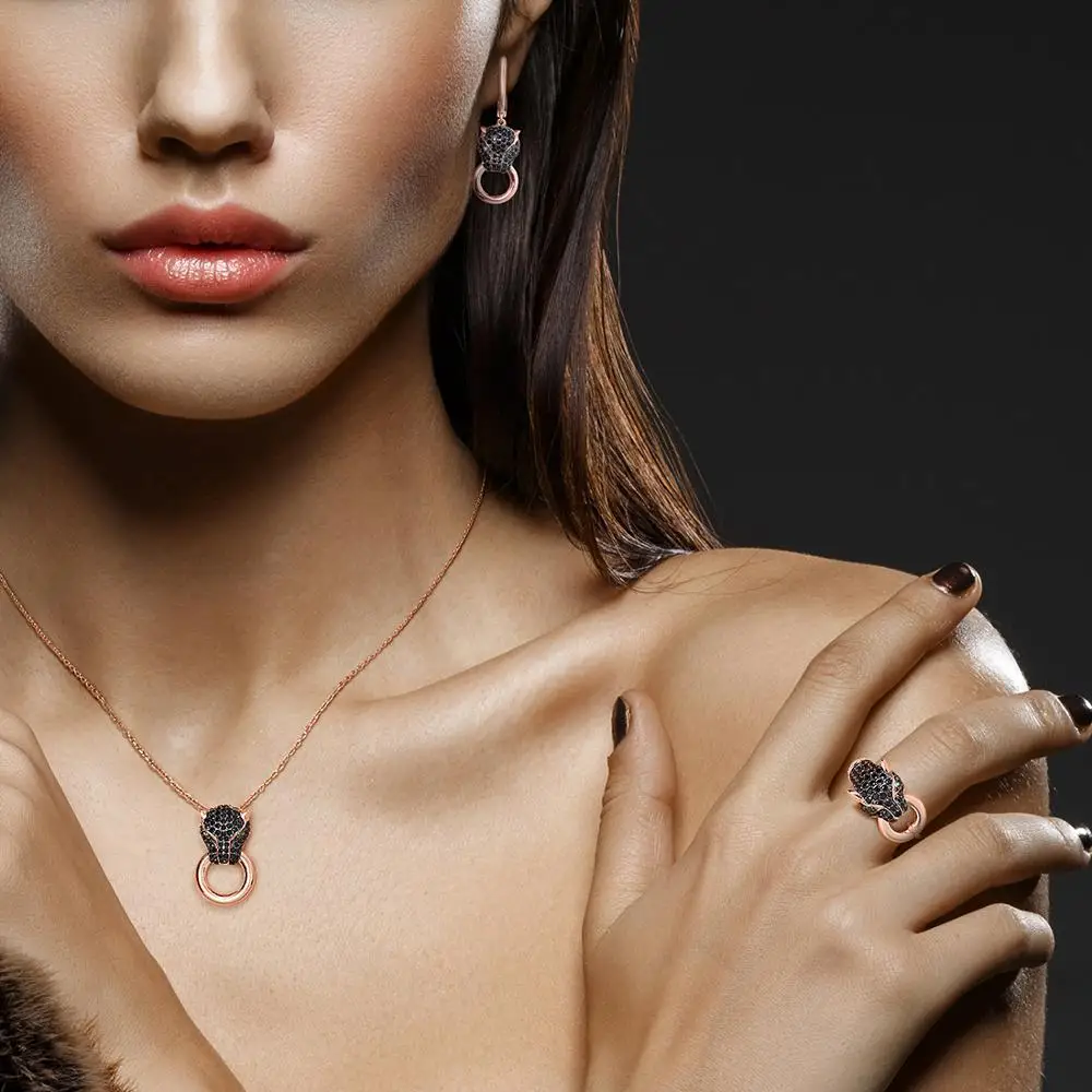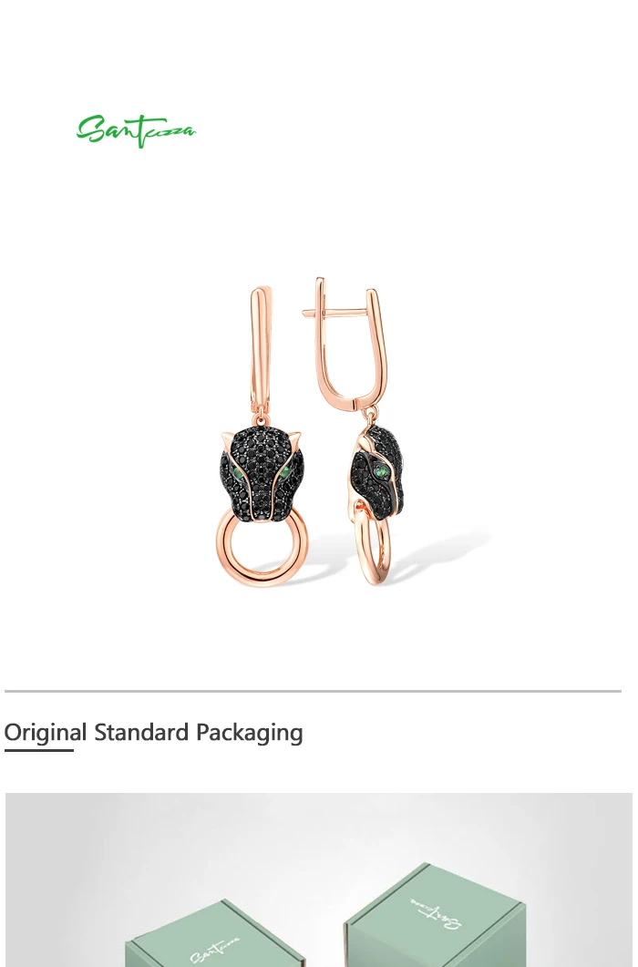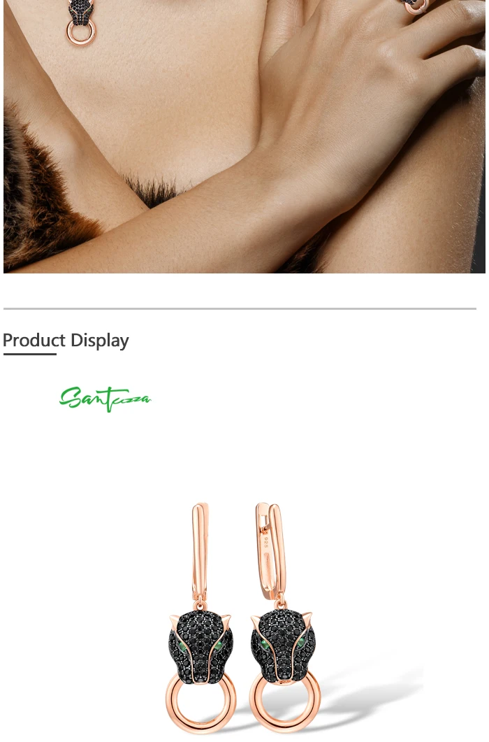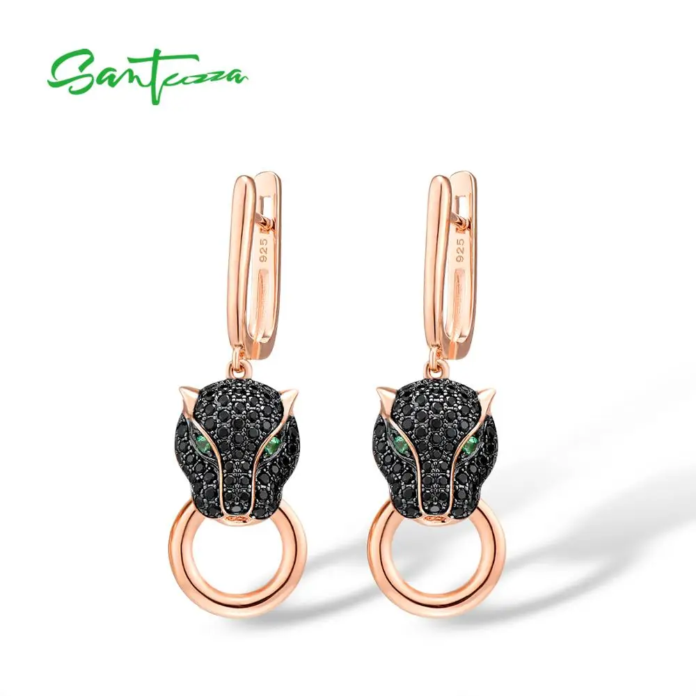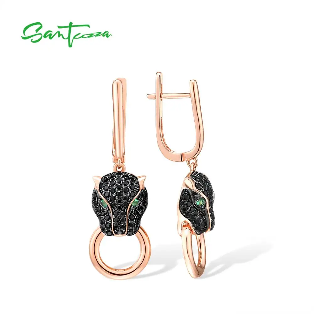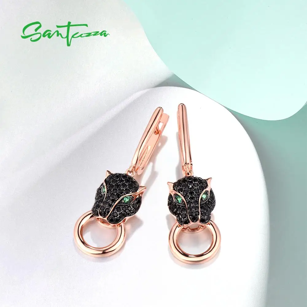 Женские серебряные серьги SANTUZZA, из серебра 925 пробы, с черной шпинелью, леопардовой пантерой, модные ювелирные украшения из драгоценных камней для вечеринок
