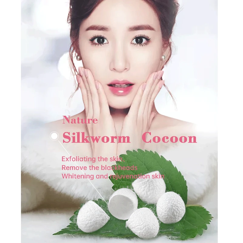 300 шт., натуральный шелк, коконы, шелкопрядный шар, уход за кожей лица, скраб, Очищающий от угрей, против старения, отбеливающий инструмент для красоты, средство для удаления черных точек