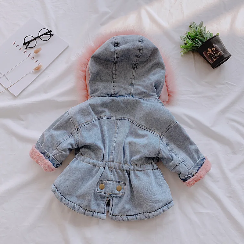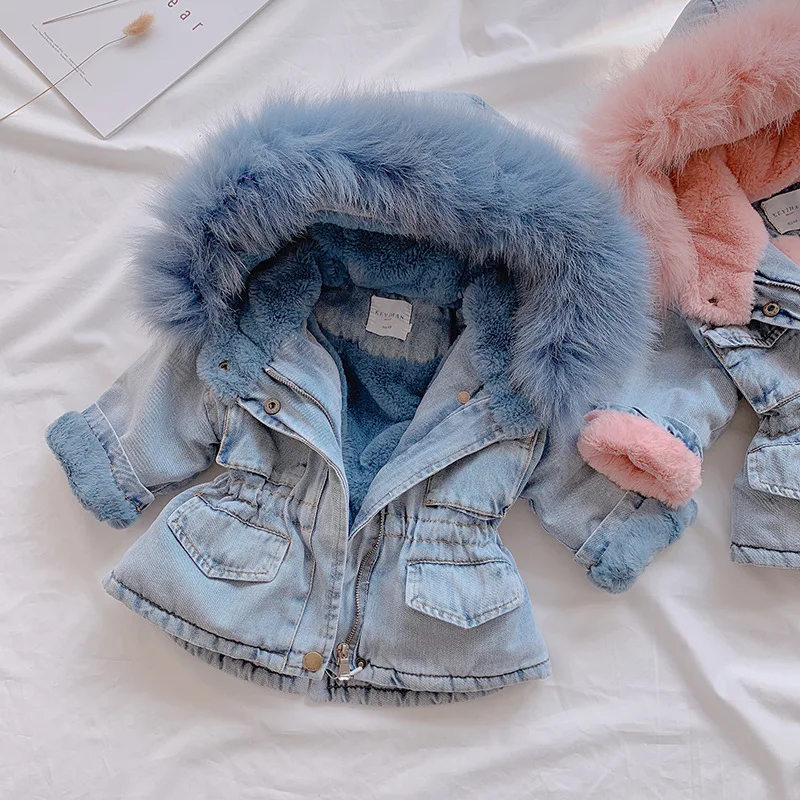 Новая модная флисовая джинсовая куртка из искусственного меха для маленьких девочек ↓↓↓