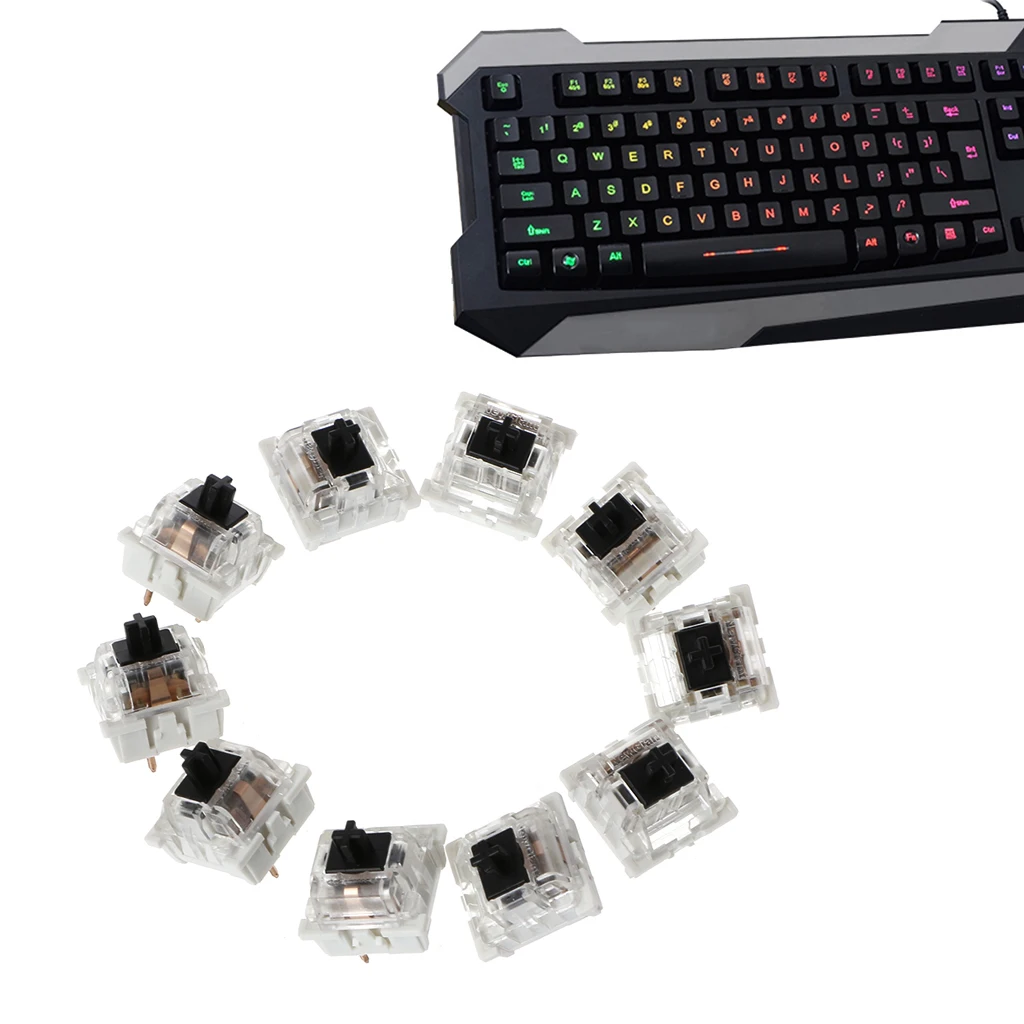 100% абсолютно новый и качественный. 10 шт., 3-контактный механический переключатель клавиатуры, синий, красный, коричневый, черный, замена для Gateron Cherry MX