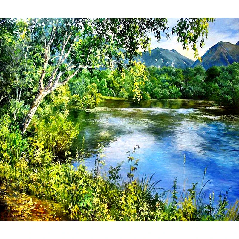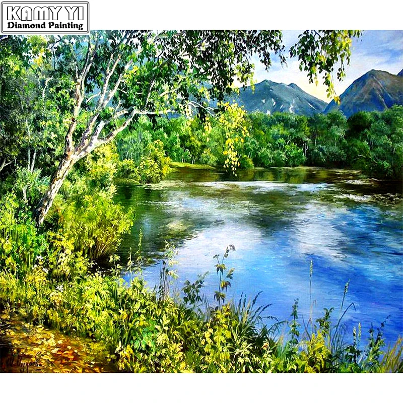 Алмазная живопись, вышивка крестом, стразы, картина из квадратных страз 5D "деревья и реки", алмазная вышивка