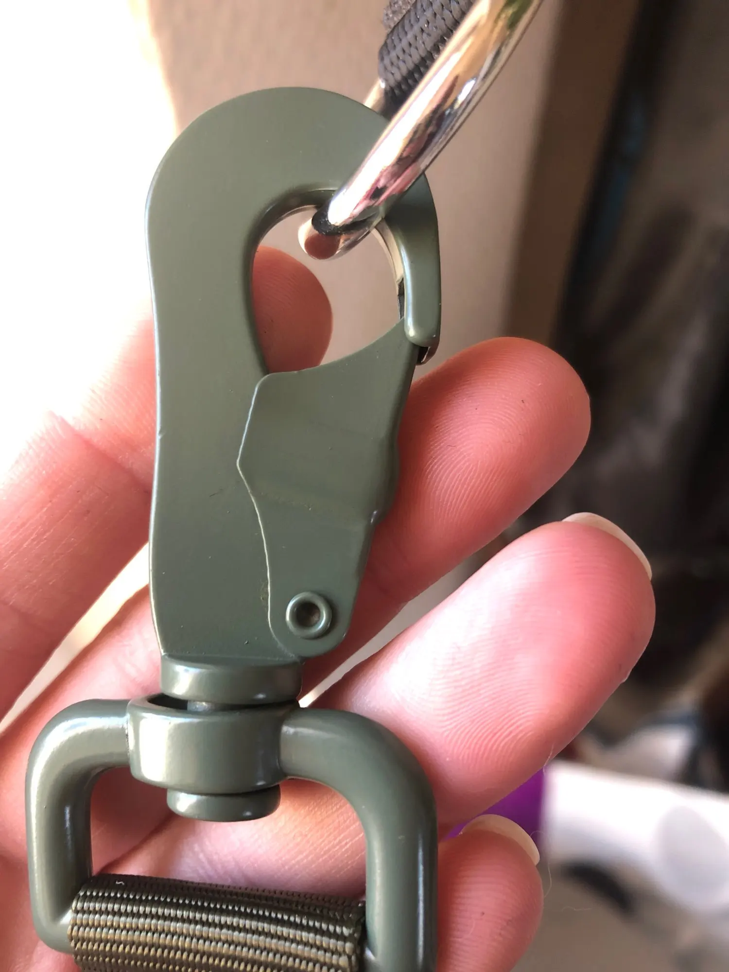 Хорошее качество ткани и шва, а также карабина.