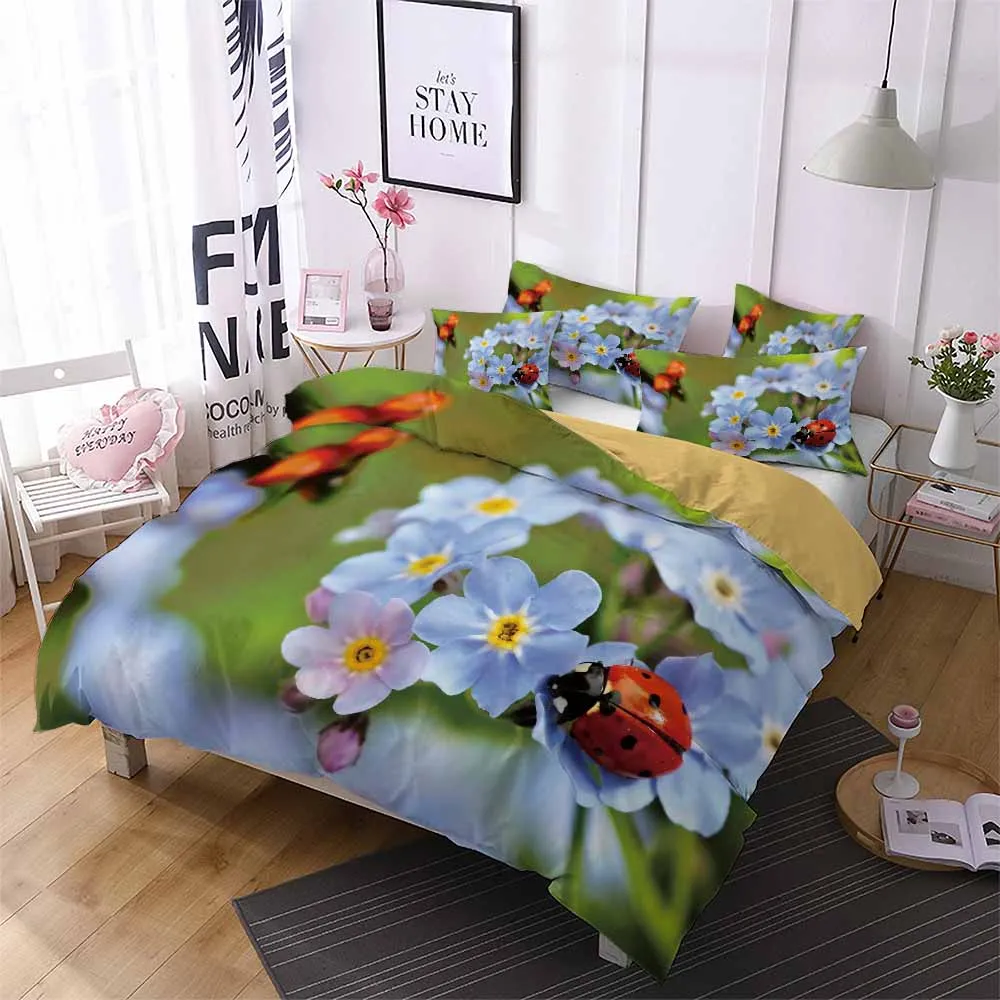Набор постельного белья с принтом божьей коровки, постельное белье из микрофибры, пододеяльник, набор постельного белья, покрывало от насекомых