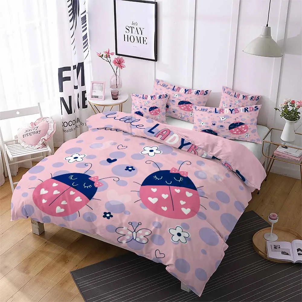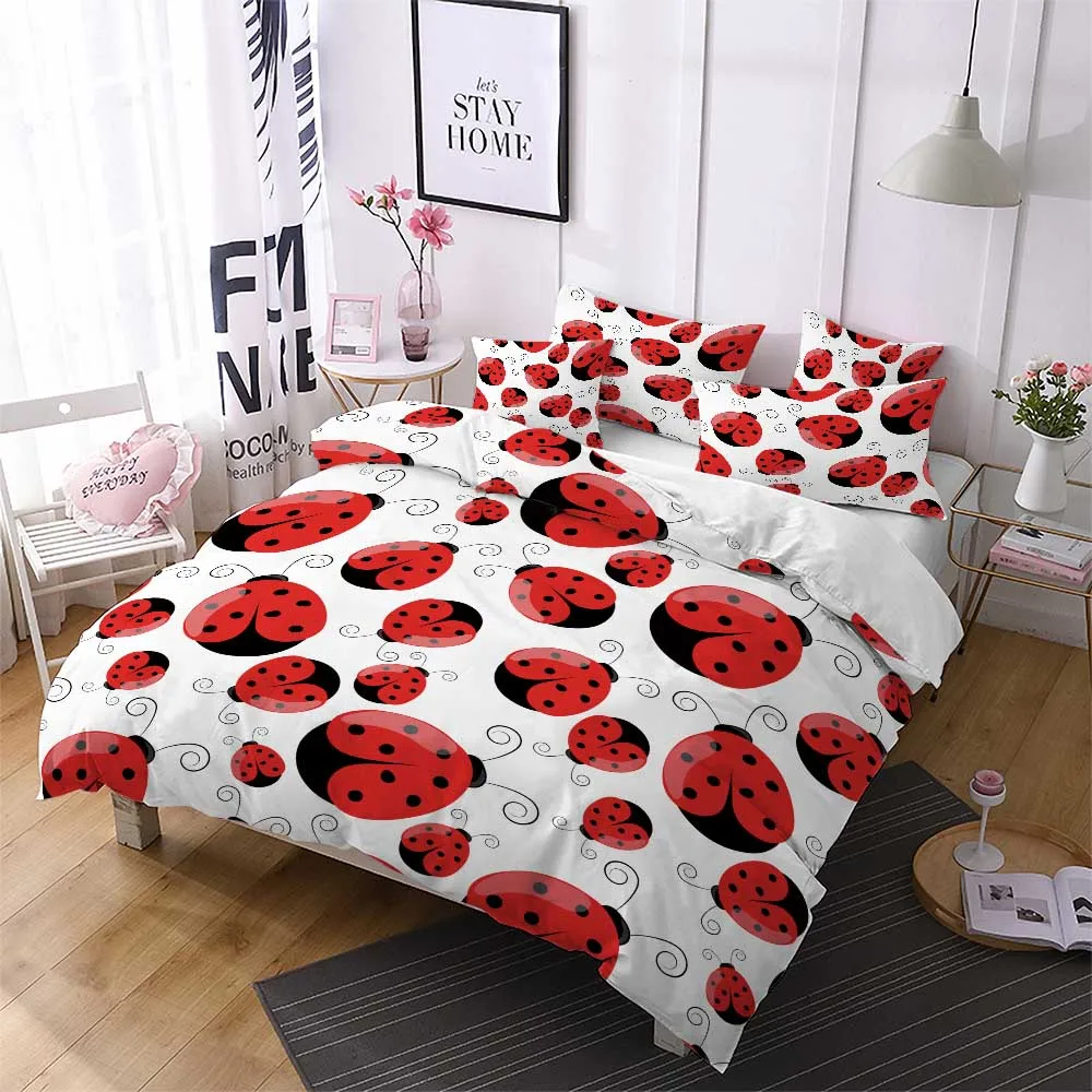 Комплект постельного белья с принтом божьей коровки, постельное белье из микрофибры, пододеяльник, набор постельного белья, набор постельного белья, пододеяльник с насекомыми