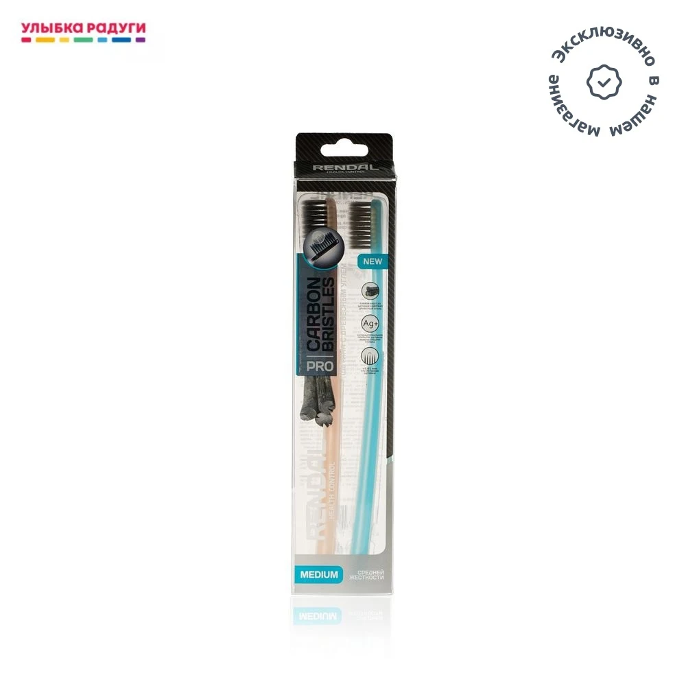 Зубная щетка Rendal с древесным углем, средней жесткости " Carbon Bristles " 2шт 3086053
