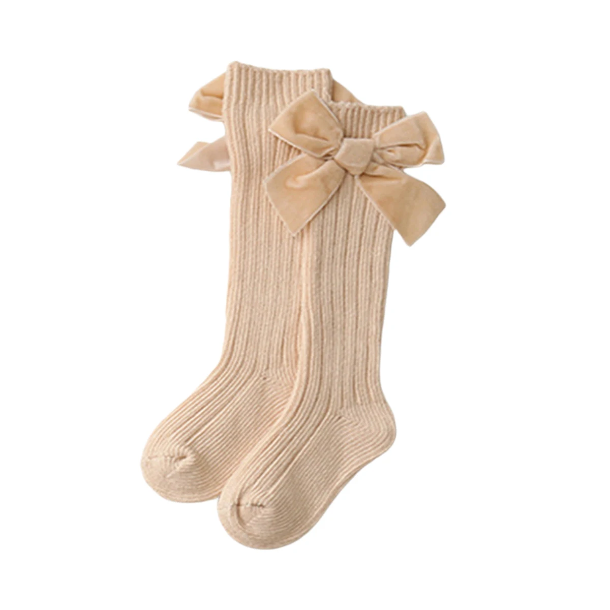 Детские бархатные носки с бантиком для девочек, детские носки-трубы...