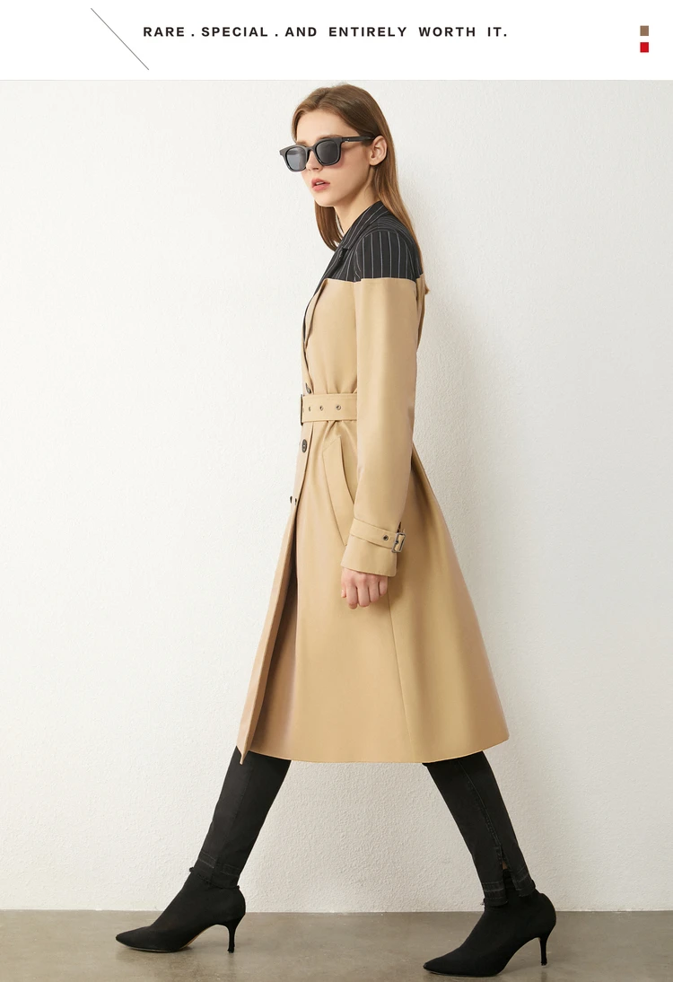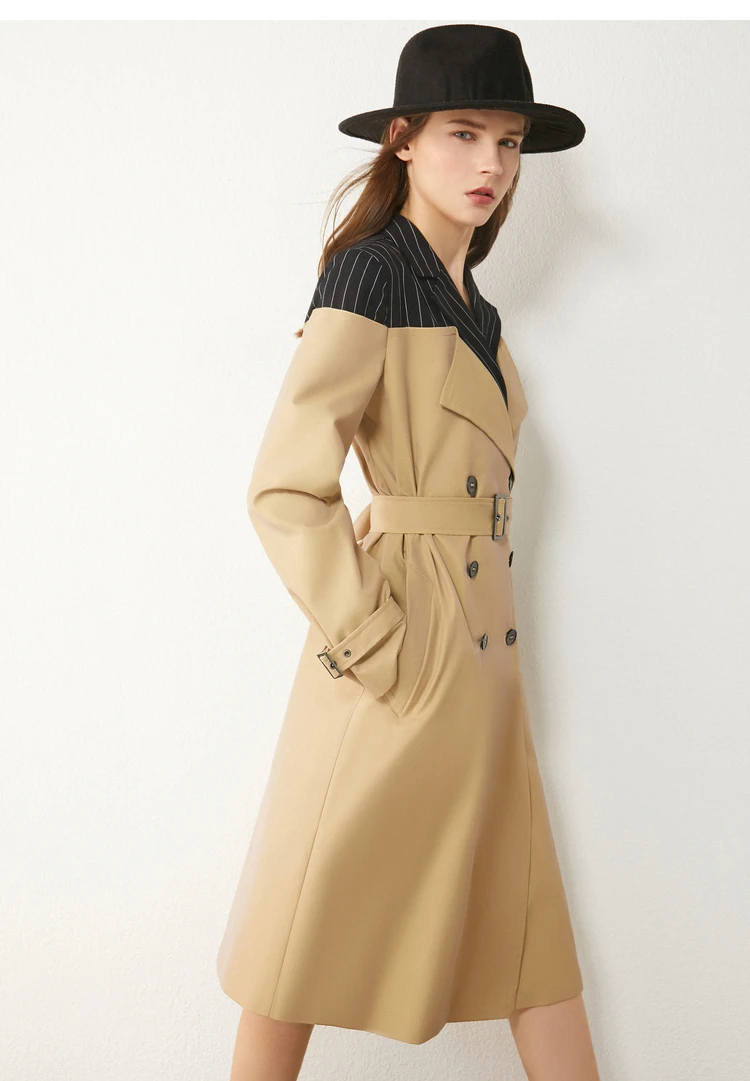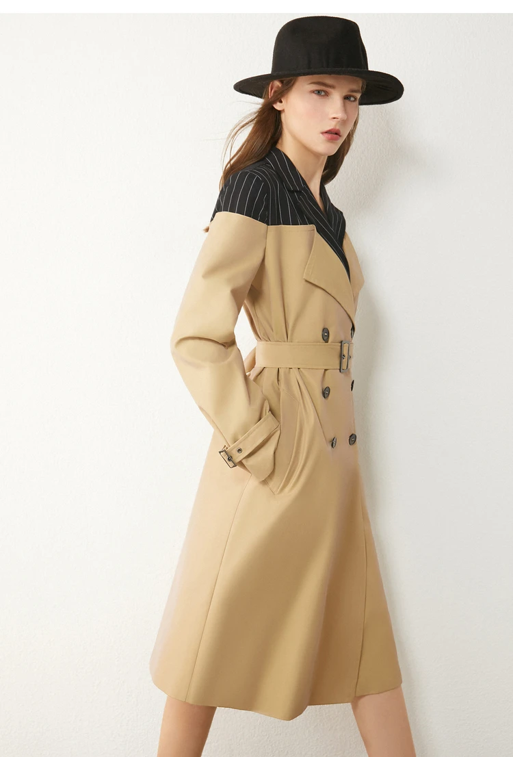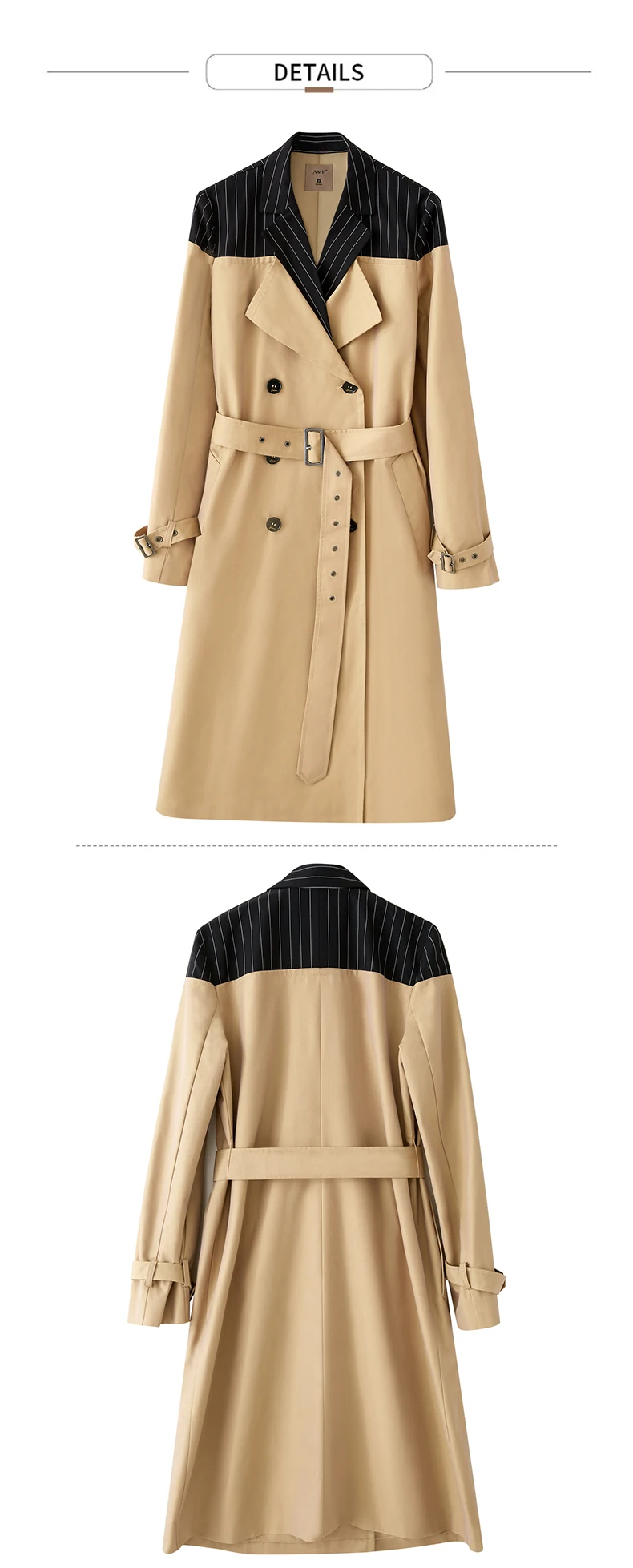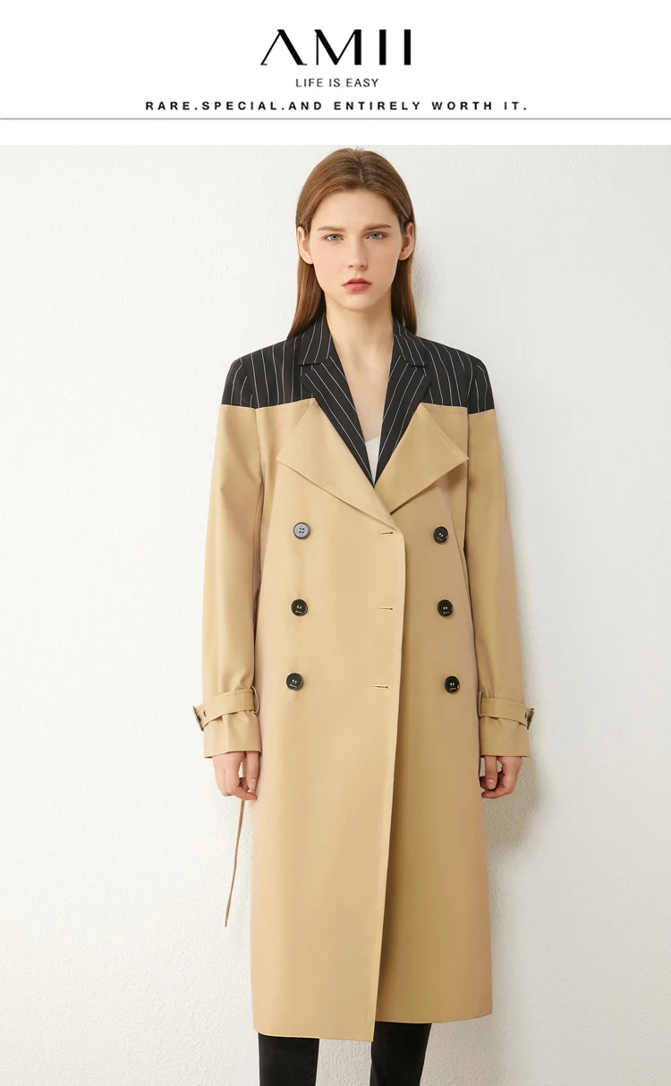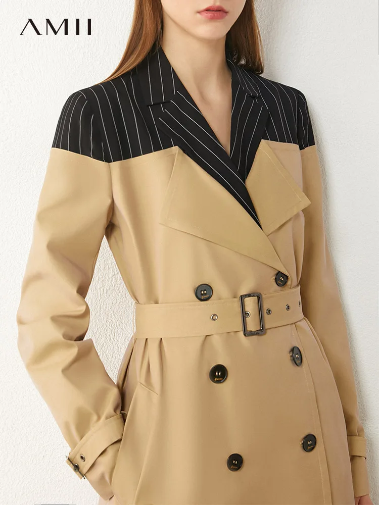 Тренч Amii минимализм Женский, модный Повседневный плащ со вставками с лацканами и поясом, темпераментная ветровка для женщин, 12040554