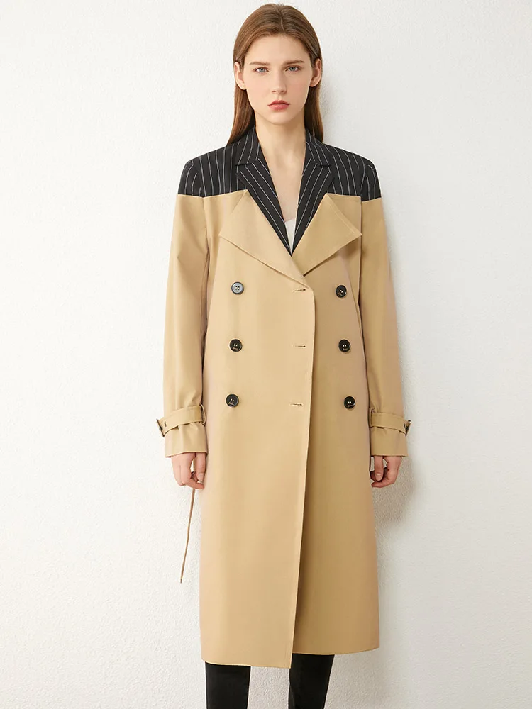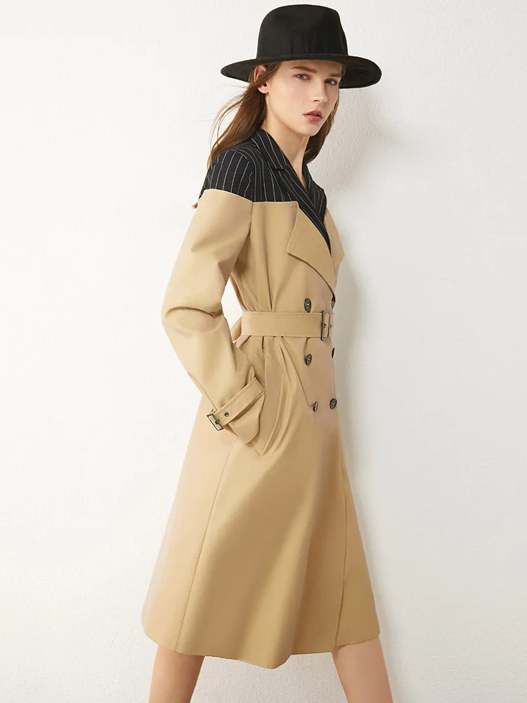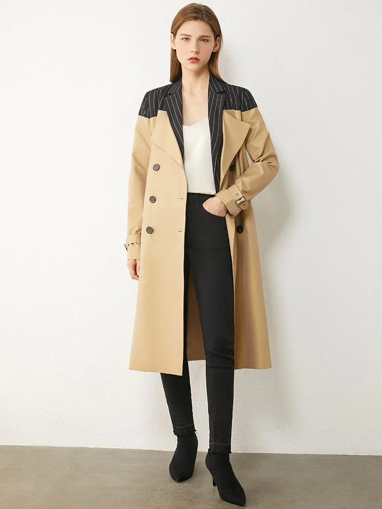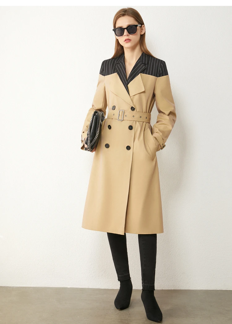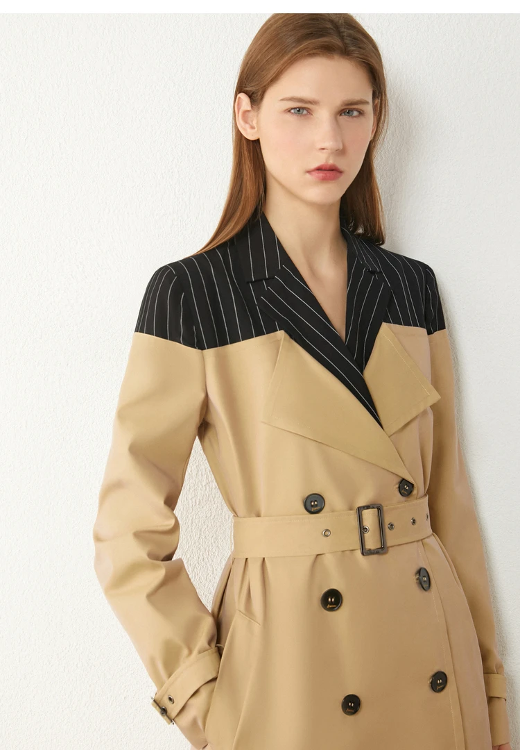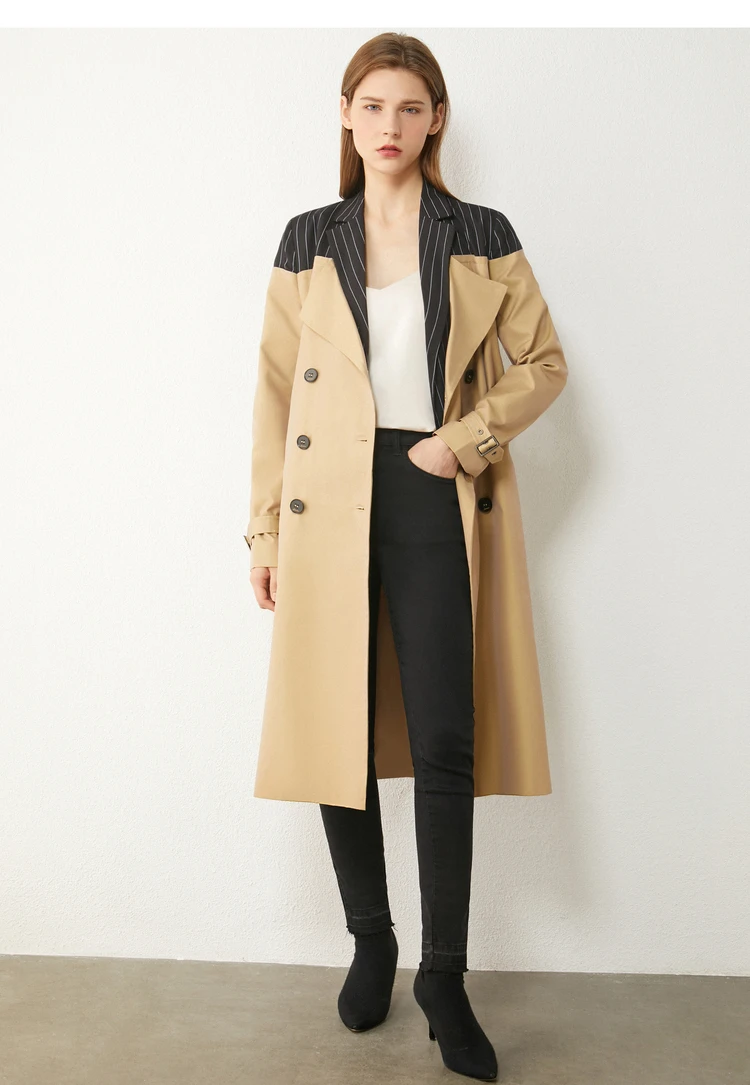 Тренч Amii минимализм Женский, модный Повседневный плащ со вставками с лацканами и поясом, темпераментная ветровка для женщин, 12040554