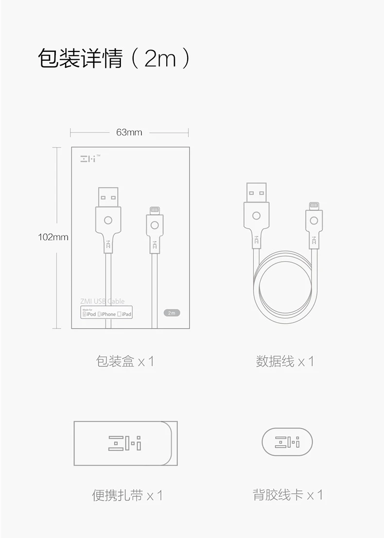 Оригинальный сертифицированный usb-кабель ZMI MFI Lightning, 1 м, 2...