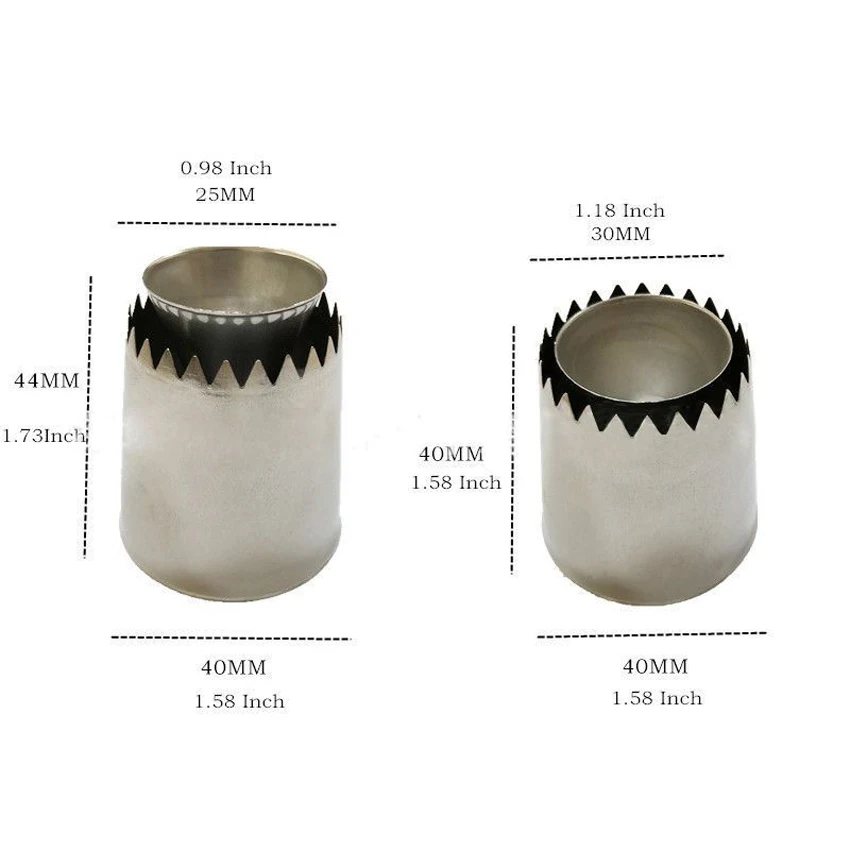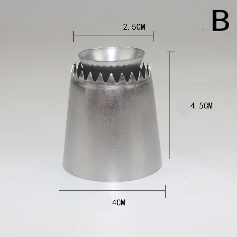 B: Внутренний диаметр: 40 мм/1,57 '', высота: 40 мм/1,57'', верхний диаметр: 30 мм/1,18''Эти кончики для украшения тортов-Лепестковые кончики, изготовленные из тонкой нержавеющей стали, так что они долговечны и высокого качества. Используя эти советы, вы можете