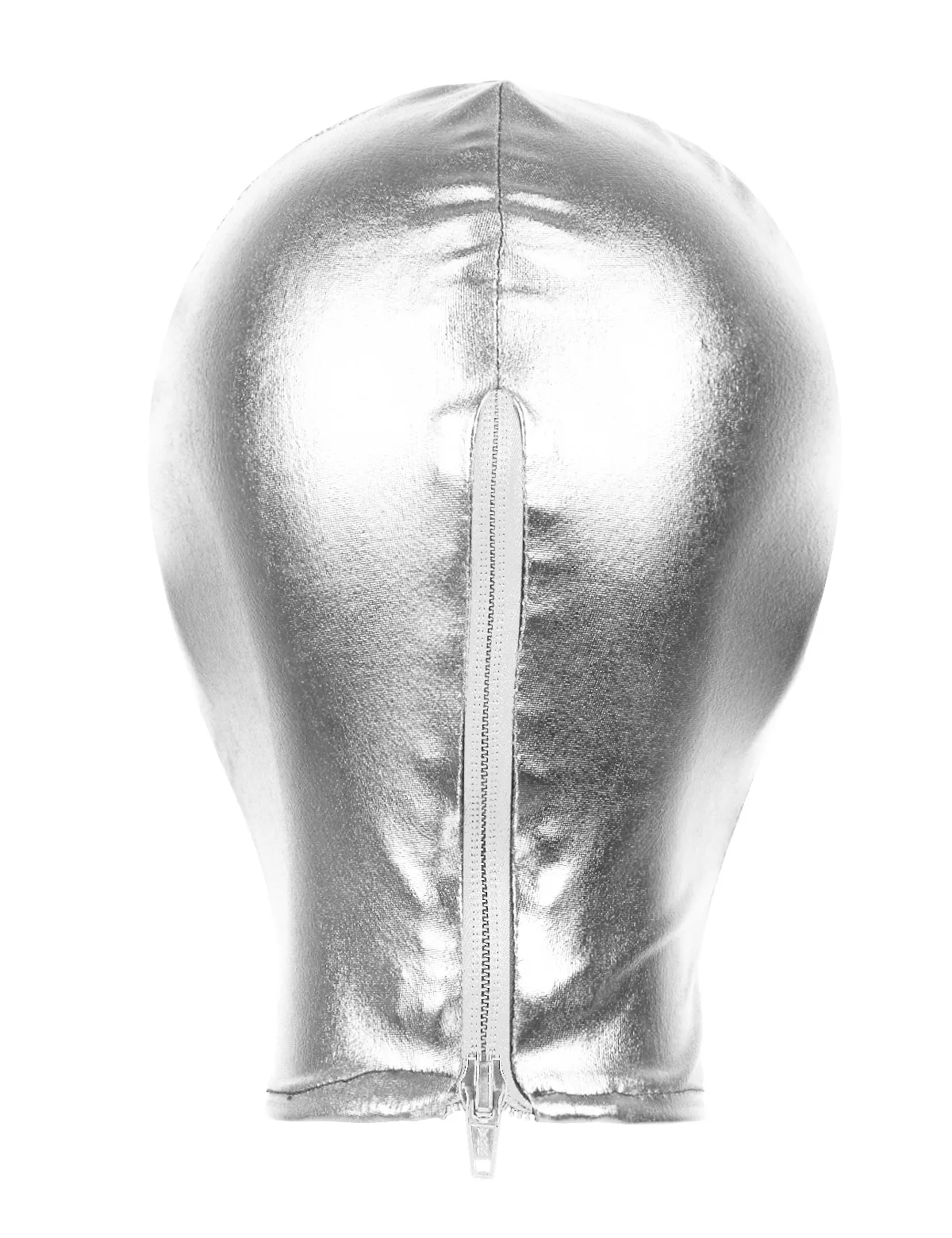 Унисекс Мужские Для женщин сексуальный Косплэй латексная маска для лица Блестящий металлический с открытым носом отверстие головные уборы анфас маска капюшон для маскарадный костюм для Хеллоуина