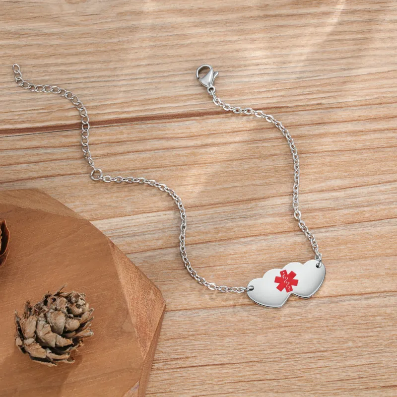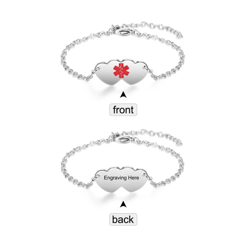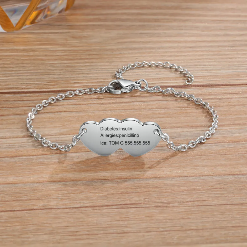 Женский браслет из нержавеющей стали с двойными сердечками, регулируемый браслет с гравировкой и надписью, подарок для женщин